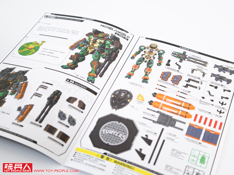 ▼ 說明書是全彩印刷,從機體介紹、配件內容、機甲忍者龜的可動範圍,到各部分的零件拆裝......等都詳細地寫好了!