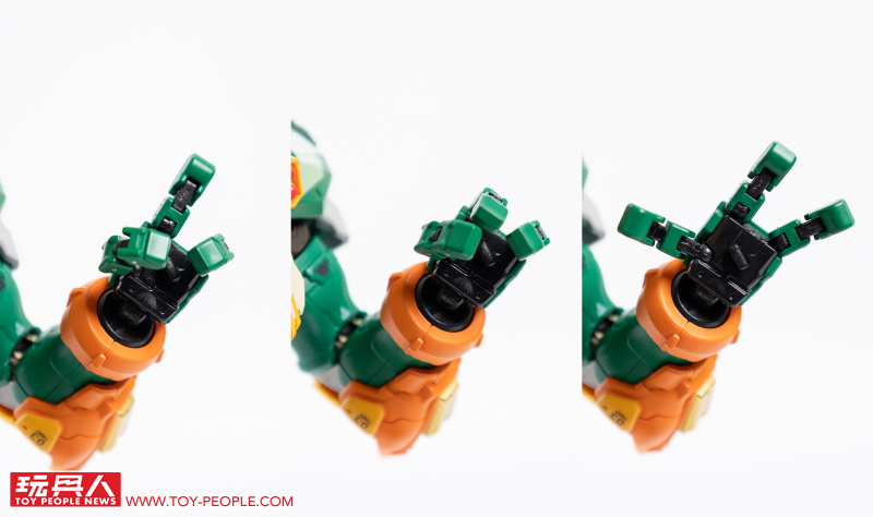 ▼ 手掌的三根手指皆是分離可動軸,並在掌心設計了卡槽可以固定雙節棍提升穩定性,要變換手勢、抓取武器都很可以。