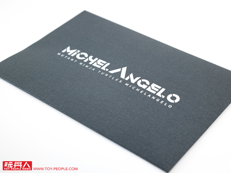 ▼ 那我們馬上就從包裝開始進入主題吧!正面大大特寫了 TMNT-03 米開朗基羅的上半身,英文名稱則是以燙銀印刷呈現,加上雙眼的發光效果看上去極具魄力!