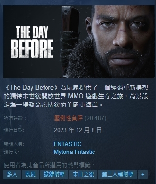 值得一提的是,本在首發就在Steam上得到玩家大量負評的《浩劫前夕》,在FNTASTIC工作室發表倒閉消息後,讓評價瞬間湧入成為「壓倒性負評」的窘境,玩家更是怒罵FNTASTIC工作室是在「本年度最大的詐欺」,甚至揚言要對電玩開發商起訴。