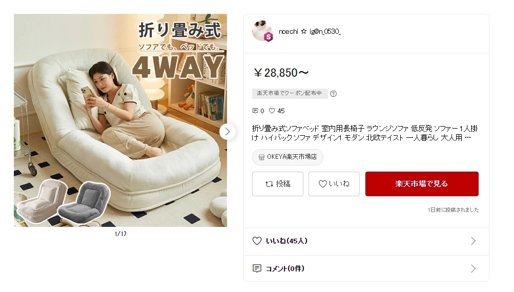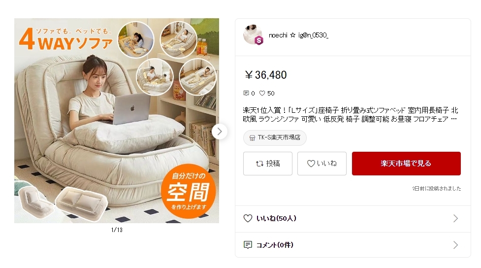那麼,這個足以破壞我脊椎的可怕沙發,要去哪裡才買得到呢?貼心的Twitter網友也在底下留言下方,分享了資訊連結,且更能夠詳細得知,這折疊式沙發床一共分成S、L、XL 等三種尺寸,價格也落在2萬至5萬日幣,相當於新台幣2千多塊起跳。