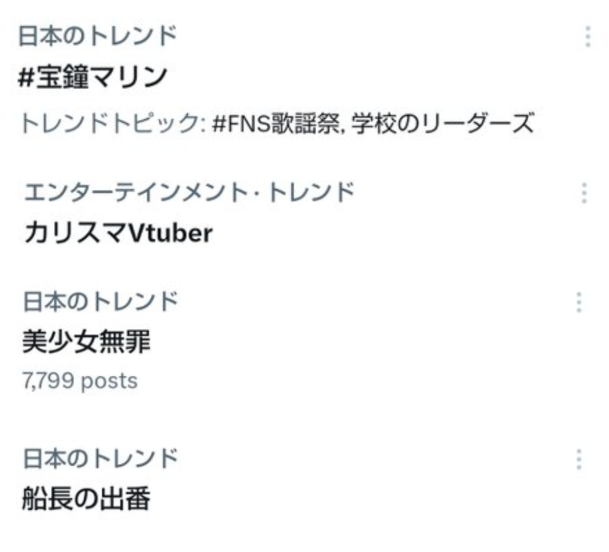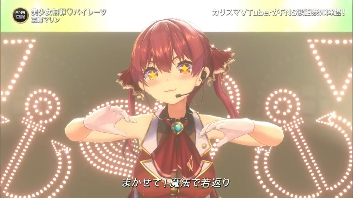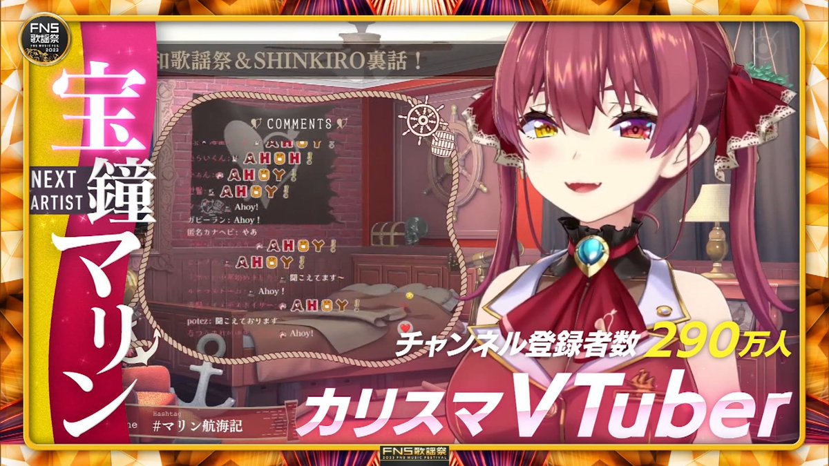 日本 Vtuber 經紀公司品牌 HoloLive 旗下的三期生船長「寶鐘瑪琳」,在今日 ( 12/13 ) 晚間登上富士電視台的長青節目「FNS歌謠祭」,更為歷來首次邀請的 VTuber 在節目演出,今日晚間一播出立刻轟炸整個日本社群,整個 X 趨勢更都是相關文字。