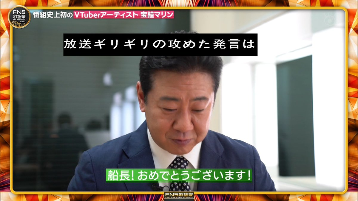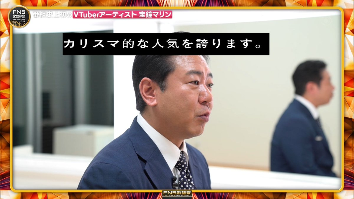 富士電視台在演出前介紹寶鐘瑪琳時,更用上了「魅力VTuber」( カリスマVtuber ) 一詞,讓不少網友與一味 ( 寶鐘瑪琳的粉絲自稱 ) 感到爆笑,老是被大家嫌棄老的船長魅力被電視台認可了www ( ? )