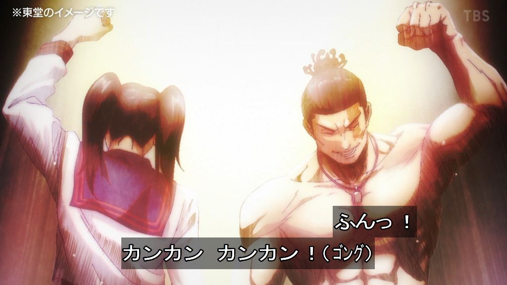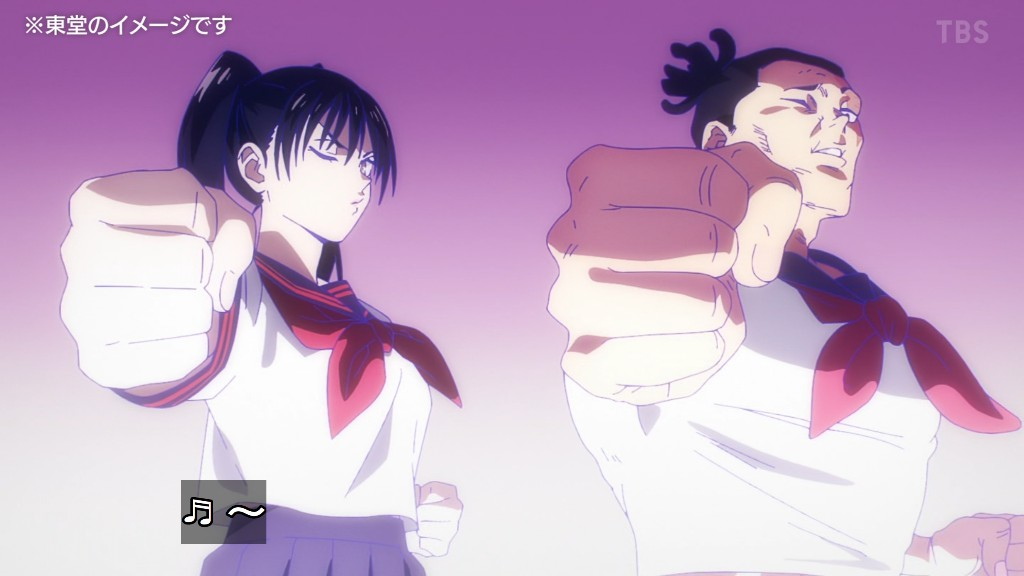 繼上一季兩校交流會對抗特級咒靈花御,這次終於又輪到東堂葵嶄露身手,原本虎杖對上真人已經遭逢心疲力盡之時,東堂 brother 這次來救場大顯神威,除了精壯的肉體打出「黑閃」外,更使出術式「不義遊戲」再次和虎杖搭配讓真人吃足苦頭。