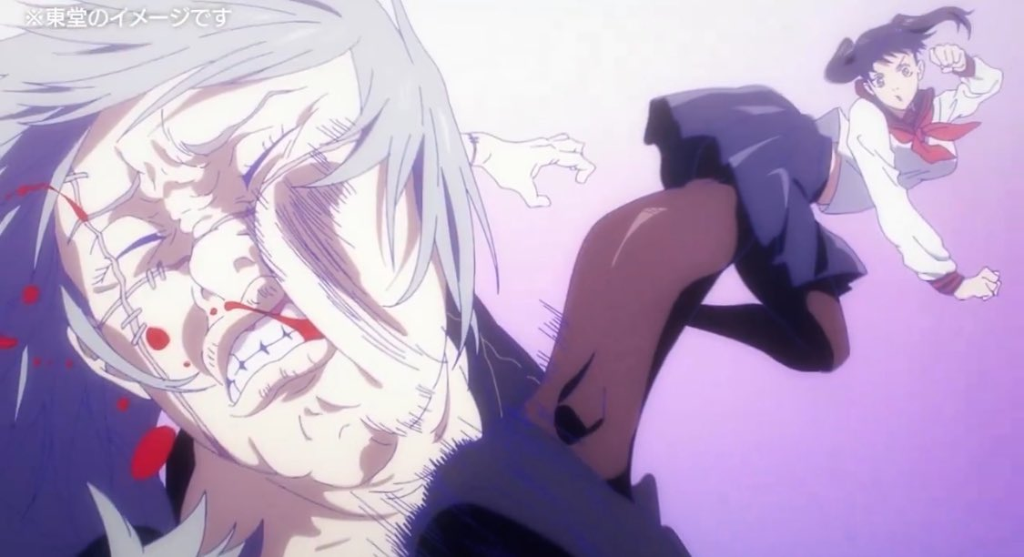 雖然這只是東堂的想像,但演出效果比起漫畫原作更加華麗,小高田穿著制服痛擊真人,雖然僅短短約一分鐘不到的演出,但真的讓人印象深刻。