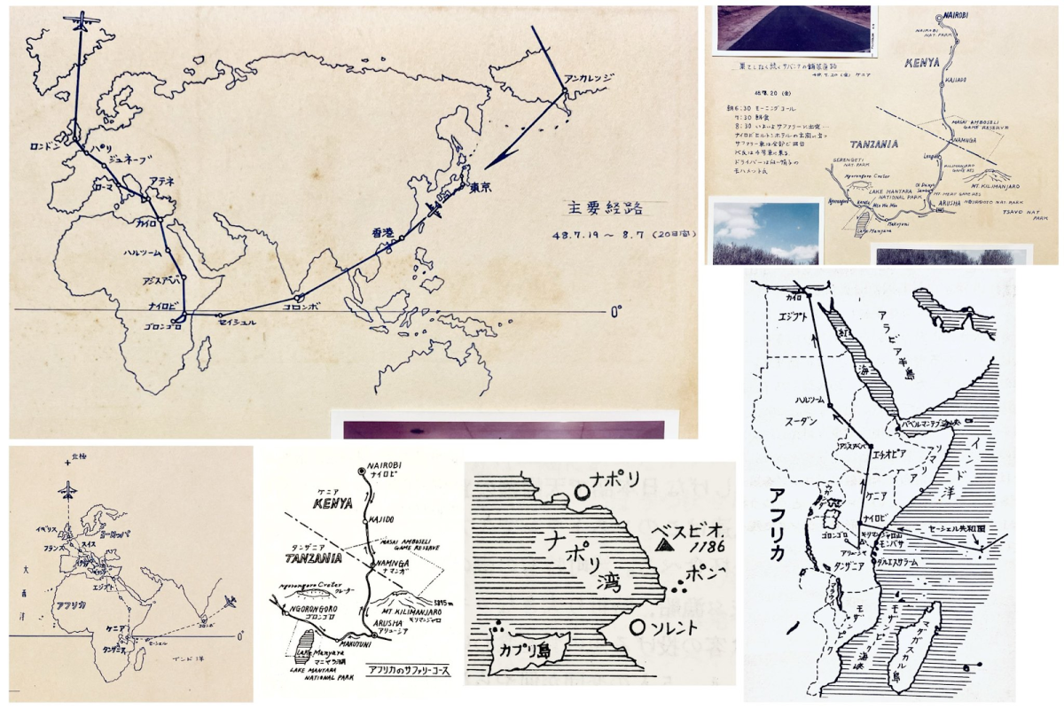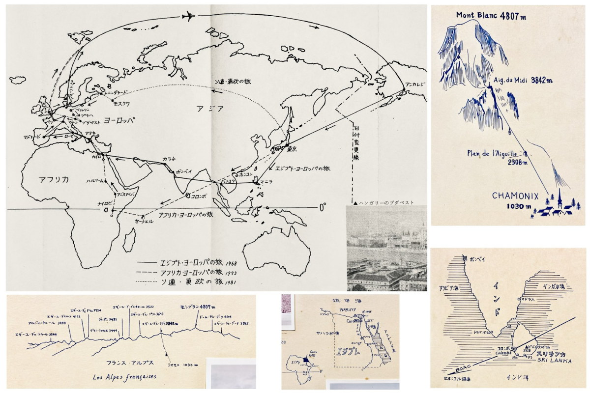 ▼左上角世界地圖下方,寫著推主祖父分別有三次世界旅行:「埃及歐洲之旅」、「非洲歐洲之旅」、「蘇聯東歐之旅」