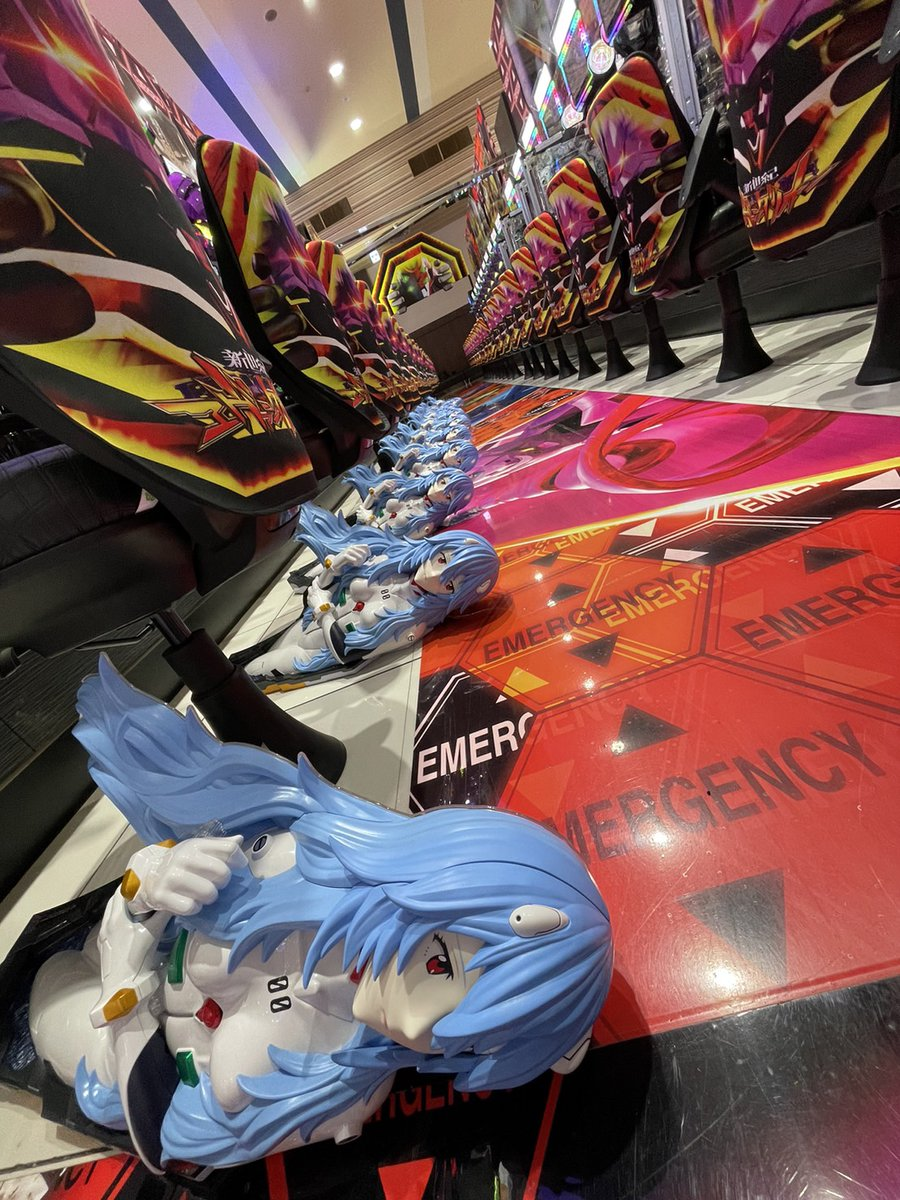 雖說大多數的人不一定喜歡玩柏青哥,但看到這樣的造型設計總是會想去朝聖,在日本 X 上不少網友也到附近店家看看新機台的樣貌,卻意外發現整排的機台放在一起時,長髮綾波零瞬間變得有點...可怕 www