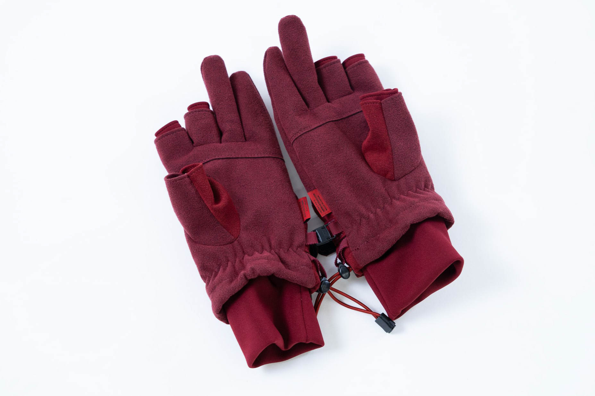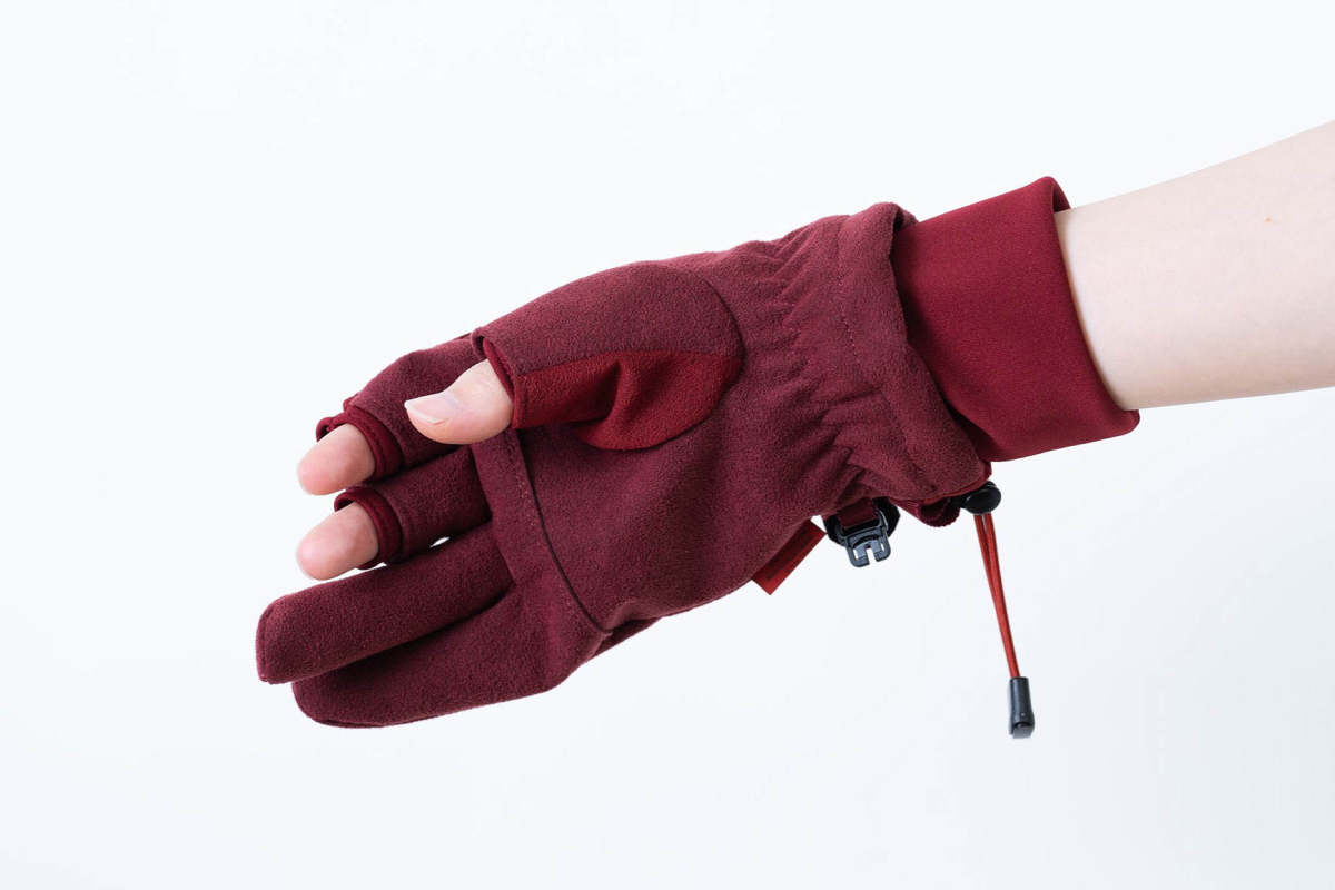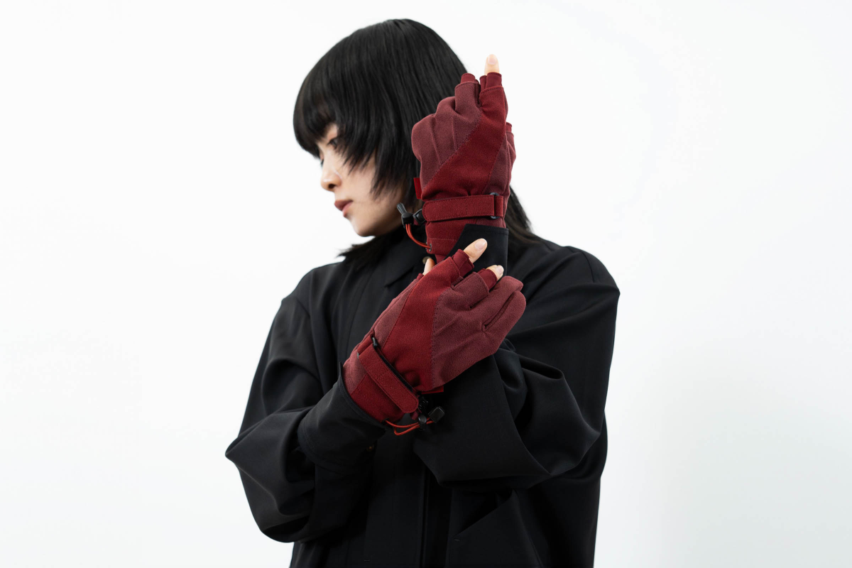 會選擇以手套製作聯名商品,就是因為纏流子時常都配置著一個僅配戴在左手的露指手套,這次 HATRA 決定把這個東西製作成商品,結合自家設計的三指開放式手指手套,以暗紅色的色系打造。雙層的設計讓手掌更加保暖外,露指設計更方便配戴者使用手機。