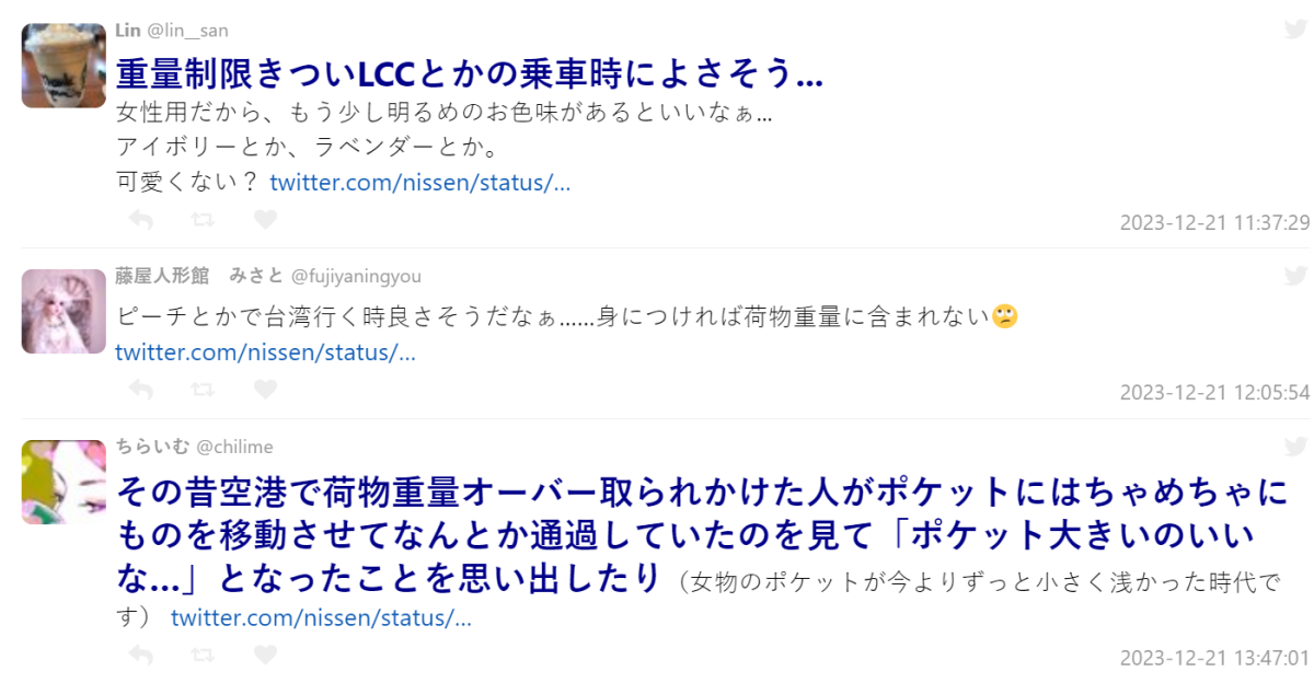 更有網友表示,去搭乘飛機有行李重量限制時,這外套就很好用了,可以把各種小物塞在身上,超級方便 ( ? )