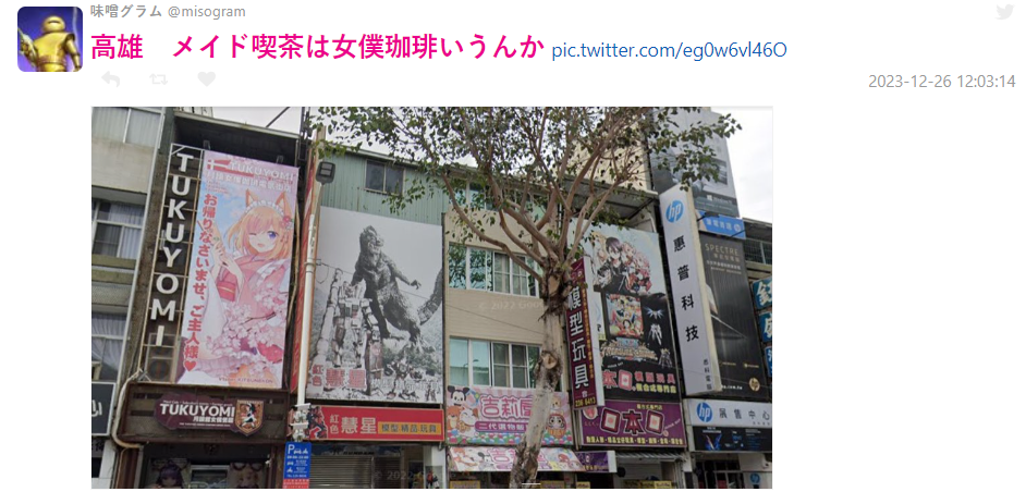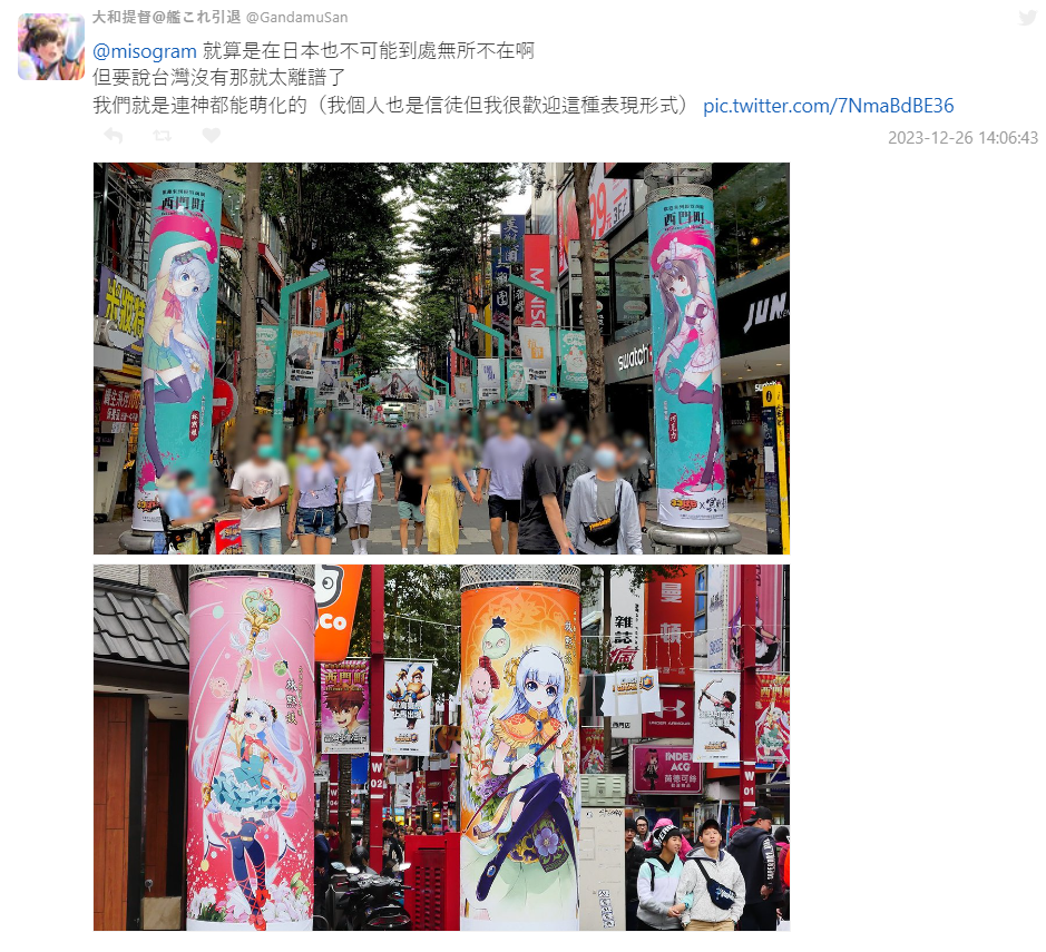 不過對於「台灣沒有萌系招牌」這一說,也有人分享了台灣有萌系存在,像是在高雄的女僕咖啡廳、高捷少女,以及西門町的林默娘都是個例子。
