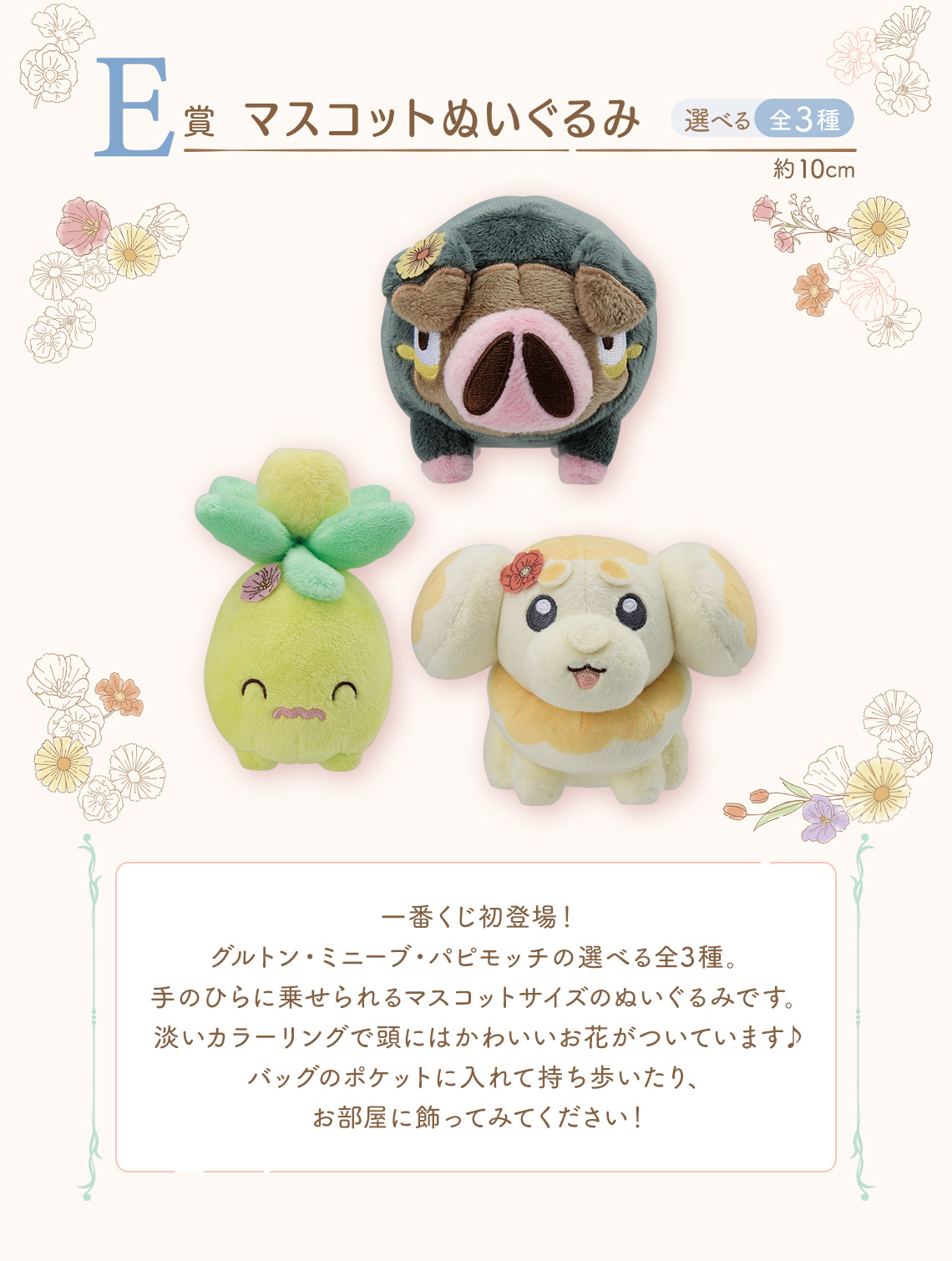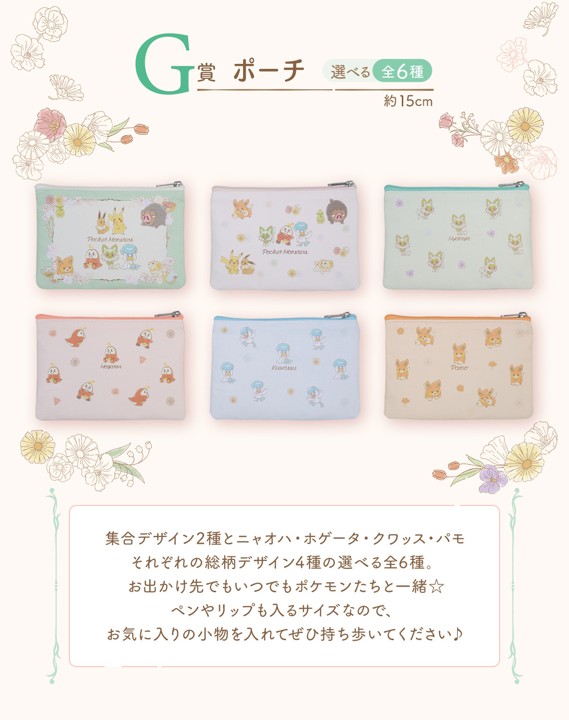 「一番賞 寶可夢Pokemon Blooming Days 」,以粉嫩繽紛的可愛風格,推出 A ~ I 賞 + Last One賞、雙重中獎機會等不同級別的豐富獎品~收錄頭上有夢幻小花花的 25 公分絨毛布偶 A賞「新葉喵」、B賞「呆火鱷」、C賞「潤水鴨」、 D賞「布波」,以及小尺寸的 E賞「布偶吊飾」、F賞「金屬吊飾」、G賞「小袋子」、H賞「備忘錄&貼紙套組」、I賞「花束式手巾」,以及Last One獎的「皮卡丘布偶」,讓充滿花花與淺色調的寶可夢圍繞你的生活~