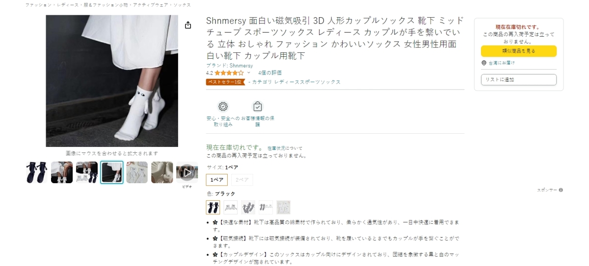事實上底下網友也提供了購買連結,表示這雙相當可愛的牽手手襪子,也能夠在日本亞馬遜網購平台上入手,除了最多情報局所分享的白色襪子外,也有黑色款式能夠選擇,不管是想買給伴侶或是朋友,也許都是一個很不錯的選擇。
