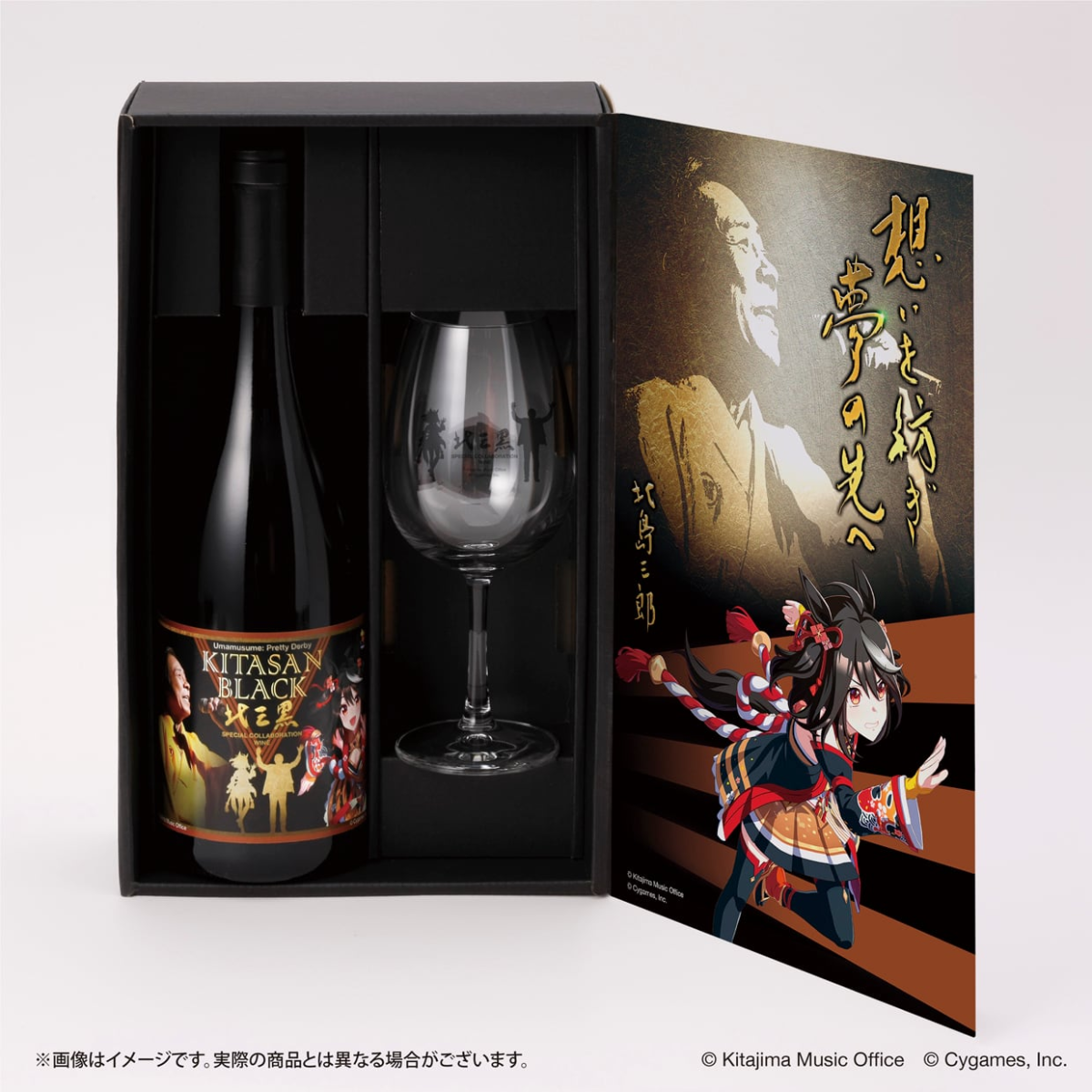 在動畫播畢的同時,官方宣布將與現實中小北的馬主,也是著名演歌歌手-北島三郎合作,推出聯名款的加州葡萄酒,並配上專屬酒杯做成精裝套組。售價為 9,900 日圓,已可於今日 ( 12/28 ) 起在「EH酒造」的線上商店預購。