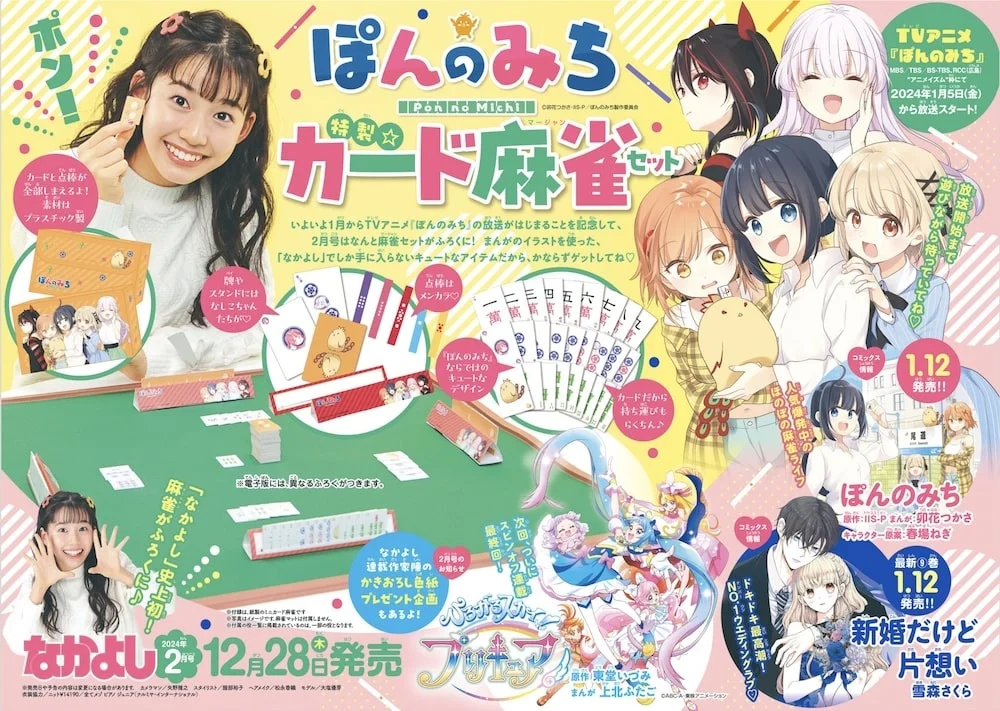 之所以會有這樣的附錄,是因為原創動畫《碰之道》(暫譯,ぽんのみち)將在 2024 年 1 月開播,先前於 2023 年 5 月宣布製作後,後續 9 月開始在 Nakayoshi 上連載漫畫,瞬間在日本少女間掀起麻雀風潮,可說是前所未見。