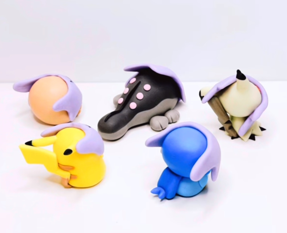 推主透過大創就能購買的簡易黏土,用巧手捏出各種百變怪的外型,搭配其他可愛萌萌的寶可夢玩出各種創意,這次概念是「被百變怪襲擊的寶可夢」,選擇直接讓百變怪貼在寶可夢的臉上來表現,包含 : 皮卡丘、謎擬Q、波加曼、木木鴞與土王都來展現,特別製作成像是正規扭蛋的宣傳圖一樣,讓人直喊想要商品化,超級可愛的啦 !