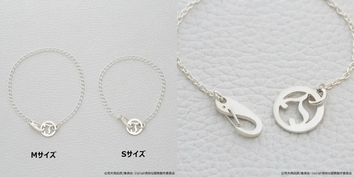 這次推出的主題,包含 : 「喬納森·喬斯達」、「喬納森的愛犬丹尼」 、「石假面 & 迪奧」、「威廉·A·齊貝林的波紋」、「幸運(Luck)與勇氣(Pluck)之劍 」、經典的「To be continued」、喬瑟夫·喬斯達武器「鋼珠旋風」、「西撒·A·齊貝林的頭巾」、「柱之男卡茲」以及「死亡婚戒」都被製作成銀飾配件,超級適合愛好 JOJO 的粉絲搭配穿搭,展現你的個人 JOJO 風格。