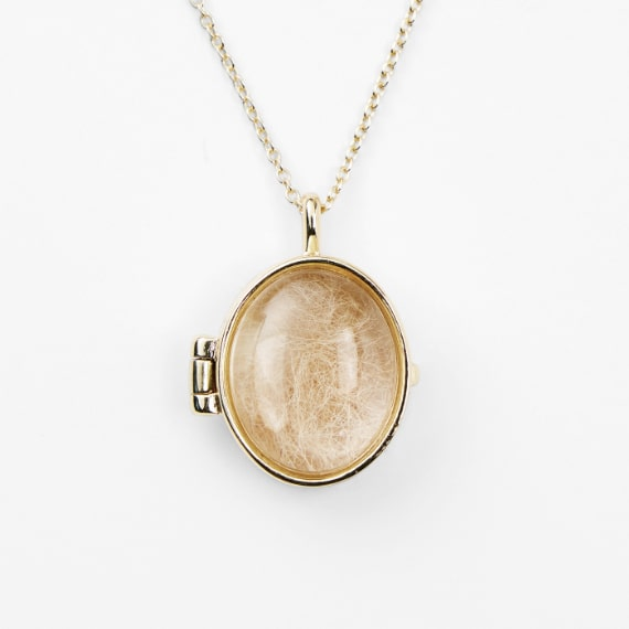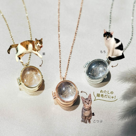 其實設計上,就是把墜飾製作成小盒子的樣貌,讓你可以把自家貓咪的貓毛收藏在其中,透過把貓咪掉落的毛髮揉成小球,放在特製的墜飾盒子內,就可以展現出有如琥珀般的效果,配戴起來也別有韻味。