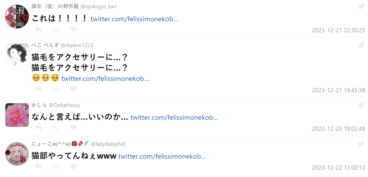 近期又宣布推出了一個趣味至極的商品「貓毛墜飾項鍊」,讓你各位貓奴們能把自家貓皇的亂毛收藏起來,隨身配戴使用,象徵你貓奴的標誌。該項商品也在日本 X 上掀起熱議,直呼 : 「 FELISSIMO 貓部真的好狂... ( 稱讚意味 )」。