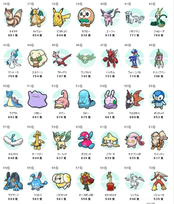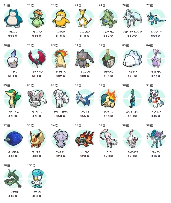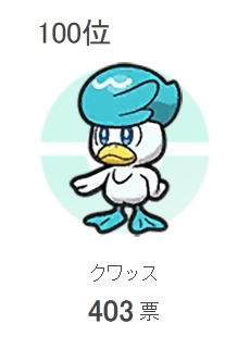 至於潤水鴨的部分...很遺憾,真的非常遺憾,總名單100位,雖然知道他在御三家當中,人氣不比新葉喵、呆火鱷,但是...他剛好就在第100名的位置,孤單著...