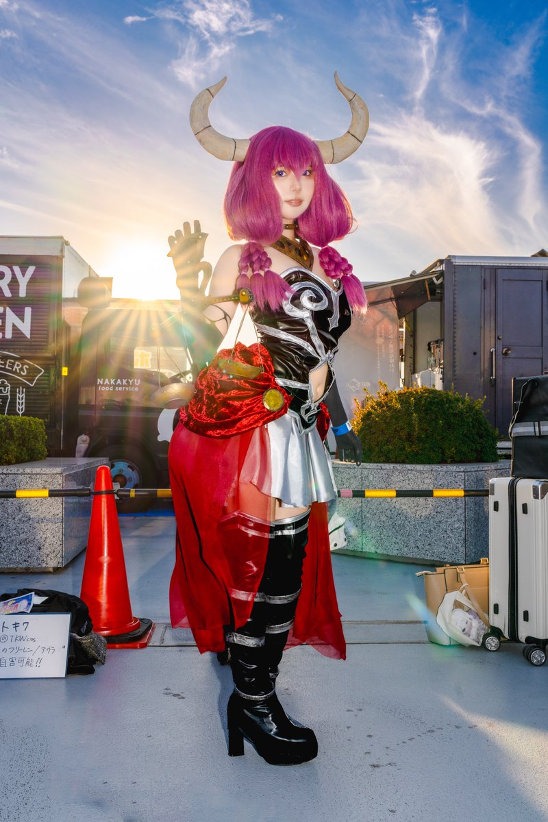 我們先前介紹過 Cos《孤獨搖滾!》廣井菊里的日本 Coserトキワ ( @TKWcos ) ,這次也到 C103 參戰,選擇的是本季動畫《葬送的芙莉蓮》超人氣的「斷頭臺的阿烏拉」,以精美還原的妝髮服裝加上手持的武器,吸引全場的目光,也成為網路關注的焦點。