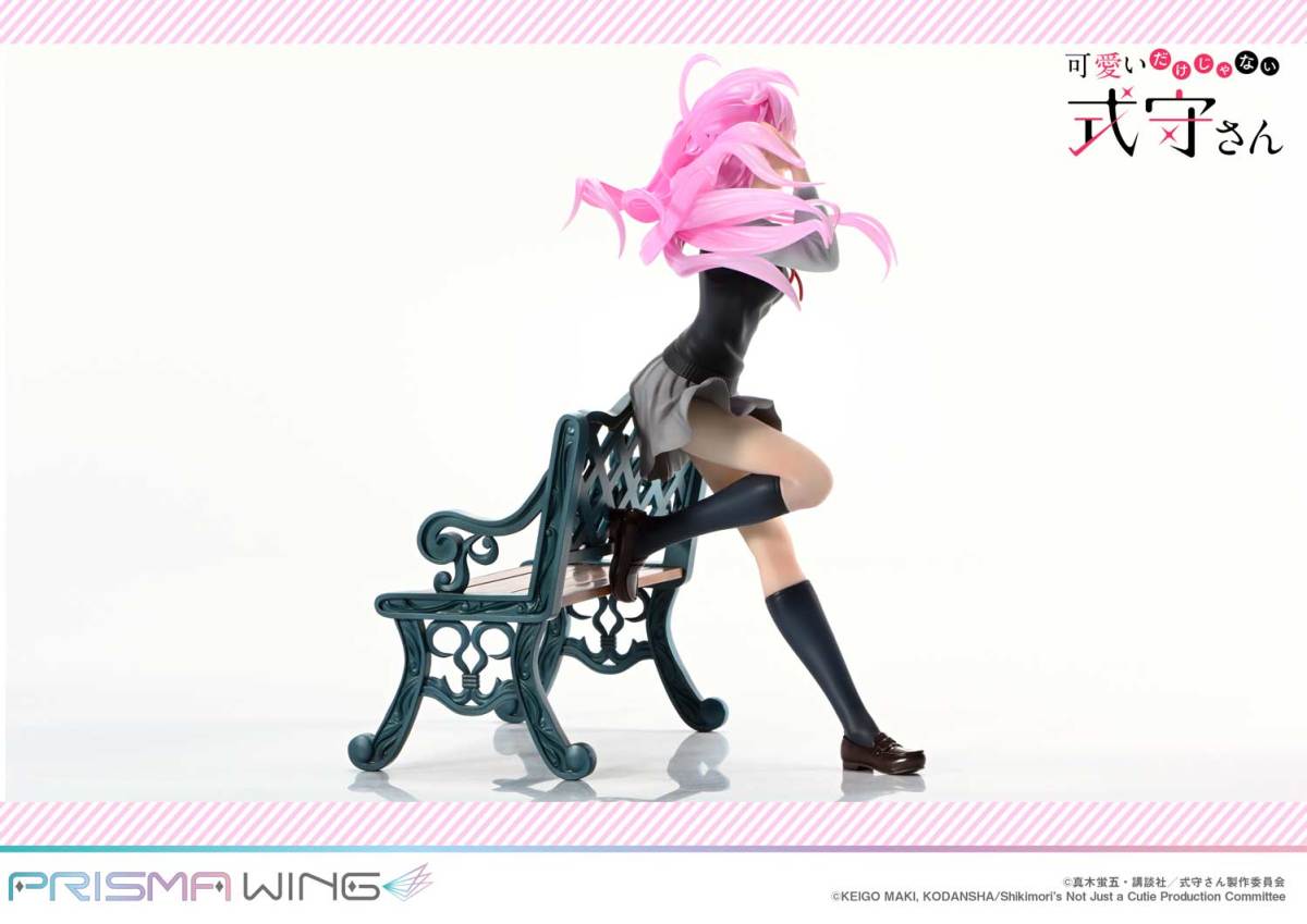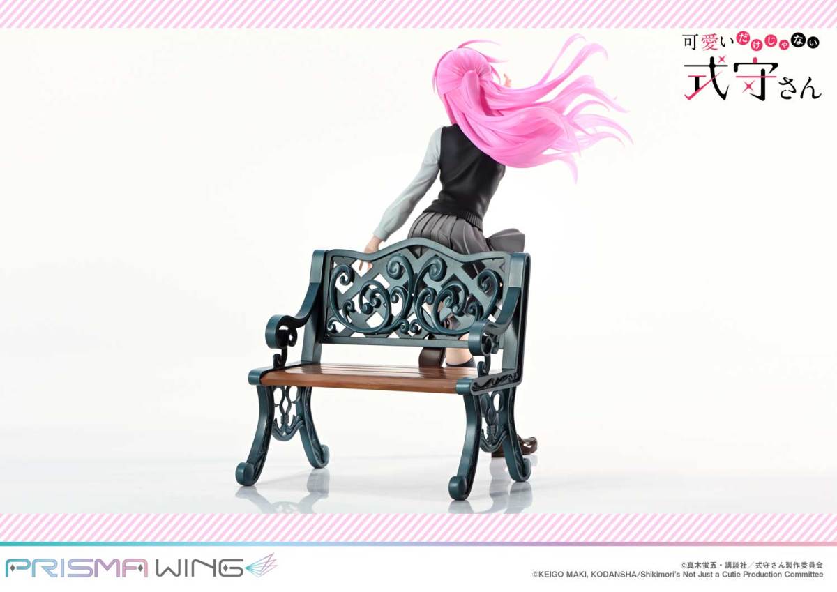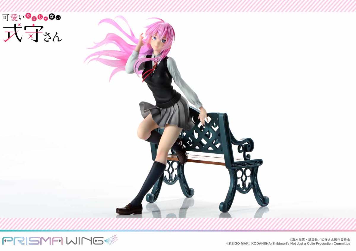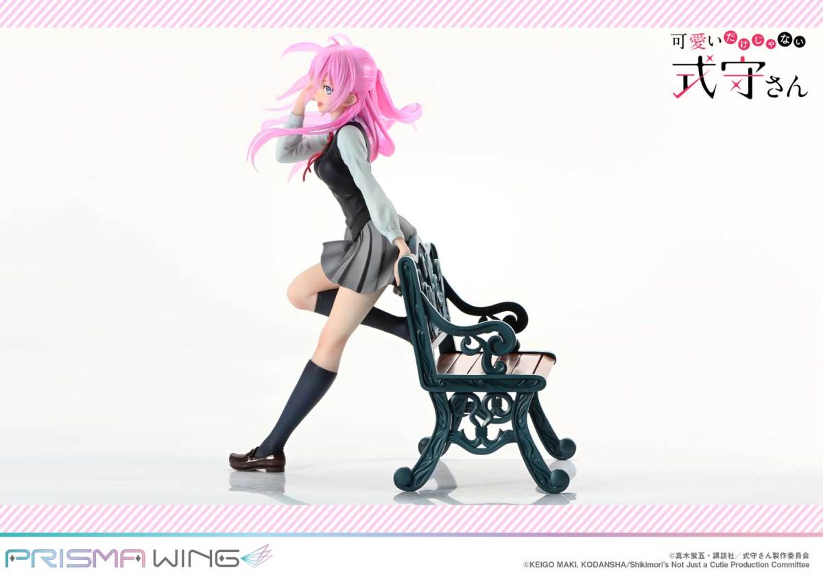 這款PRISMA WING所推出的式守同學之1/7立體人形,全高約有22公分,以式守身著學生制服的外型為基準實體還原,搭配她倚靠在人行道長椅的立姿,看起來可愛又大方,式守同學那一頭粉紅色的長髮,做出猶如風吹過的飄動感,與她右手輕撫和裙擺的些許飄動,整體更顯得相當生動。明眸的藍色雙眼和修長的雙腿,讓人想起她在作品中對和泉的溫柔模樣。另外在表情方面,還有她露出認真眼神的帥氣表情零件可以替換。如果在Prime 1 Studio的網路預購的話,可以得到特典的圍巾配件,該配件以實際布料製作,相當有質感。