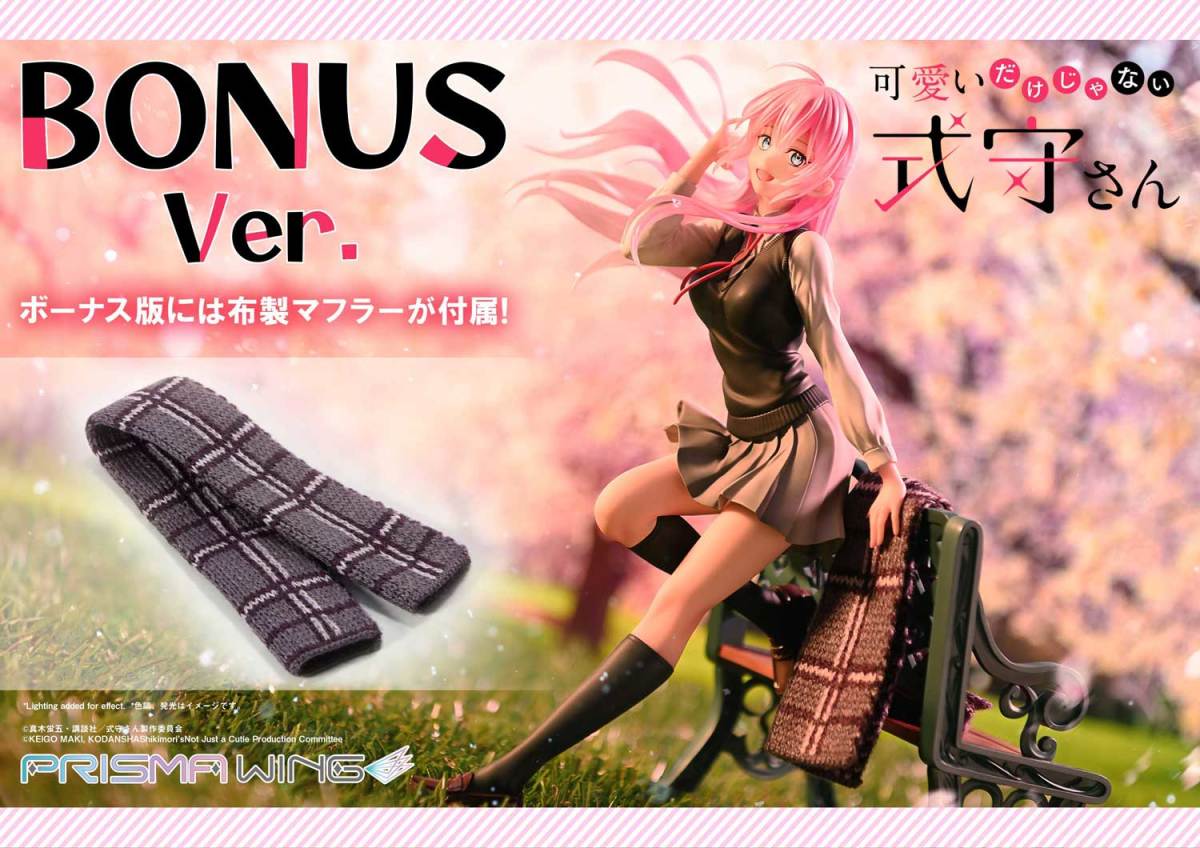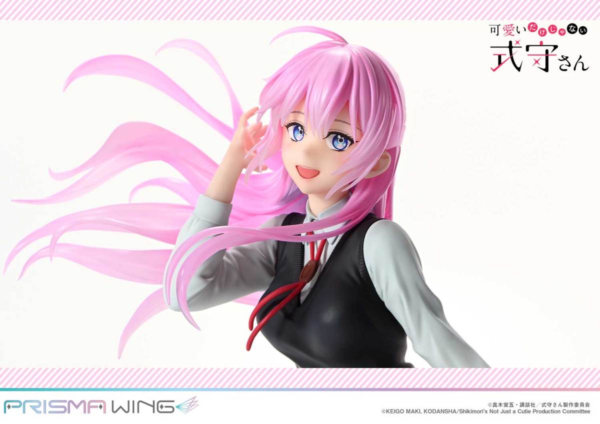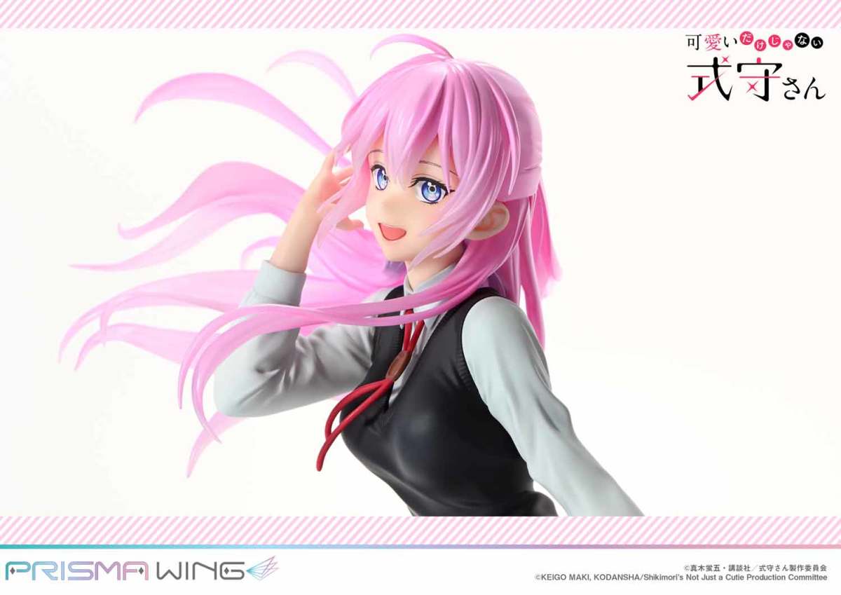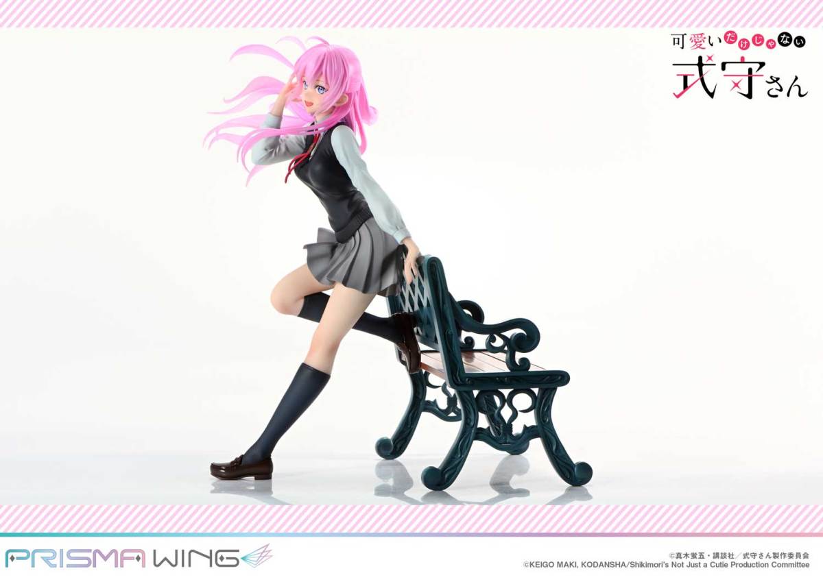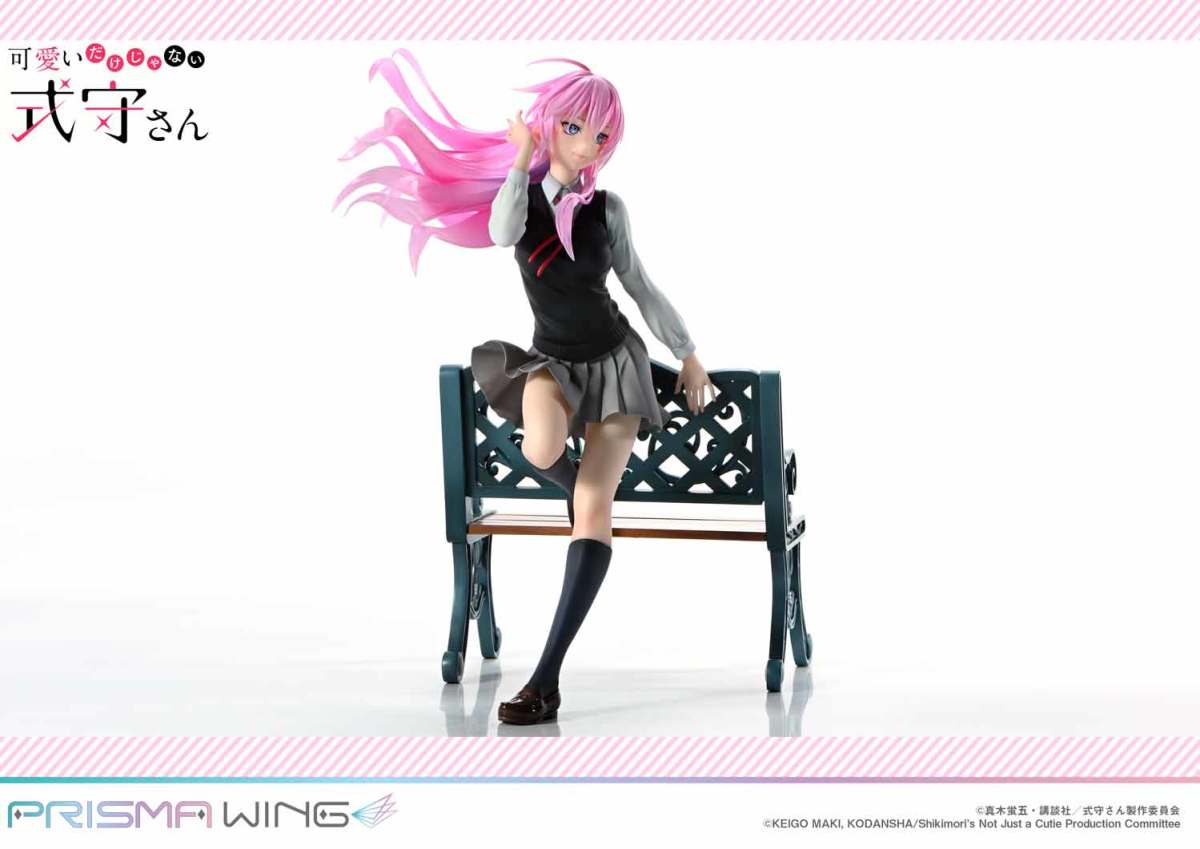 這款PRISMA WING所推出的式守同學之1/7立體人形,全高約有22公分,以式守身著學生制服的外型為基準實體還原,搭配她倚靠在人行道長椅的立姿,看起來可愛又大方,式守同學那一頭粉紅色的長髮,做出猶如風吹過的飄動感,與她右手輕撫和裙擺的些許飄動,整體更顯得相當生動。明眸的藍色雙眼和修長的雙腿,讓人想起她在作品中對和泉的溫柔模樣。另外在表情方面,還有她露出認真眼神的帥氣表情零件可以替換。如果在Prime 1 Studio的網路預購的話,可以得到特典的圍巾配件,該配件以實際布料製作,相當有質感。