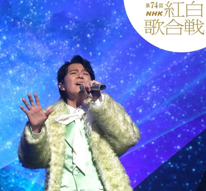 代表白組壓軸的歌手福山雅治,今年穿上整身的蘋果綠套裝,更在途中披上同色系的毛皮大衣,這樣的搭配雖說不少人表示只有福山的帥度可以撐得起這套衣服,不過仍有網友對此開玩笑卻引起關注。
