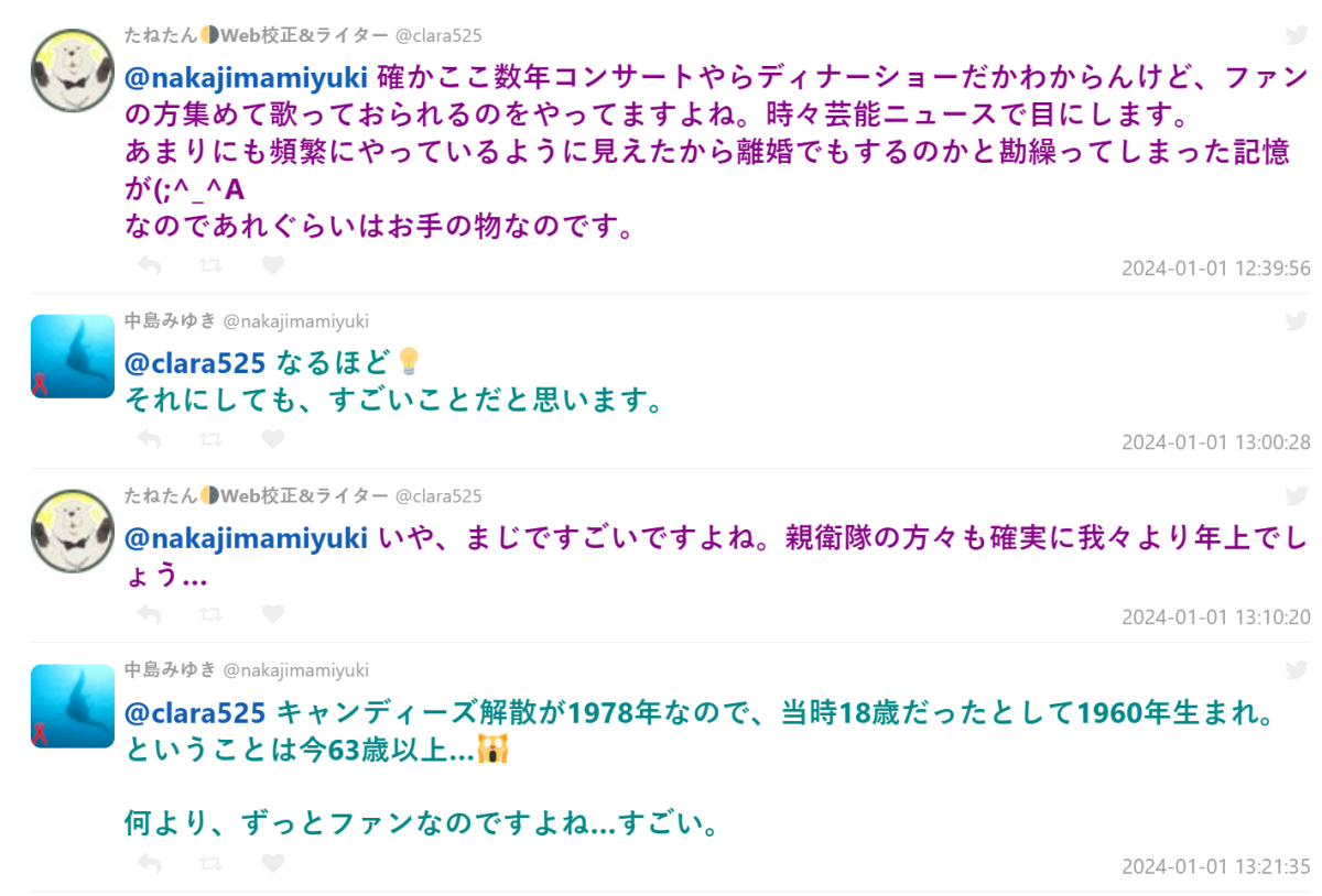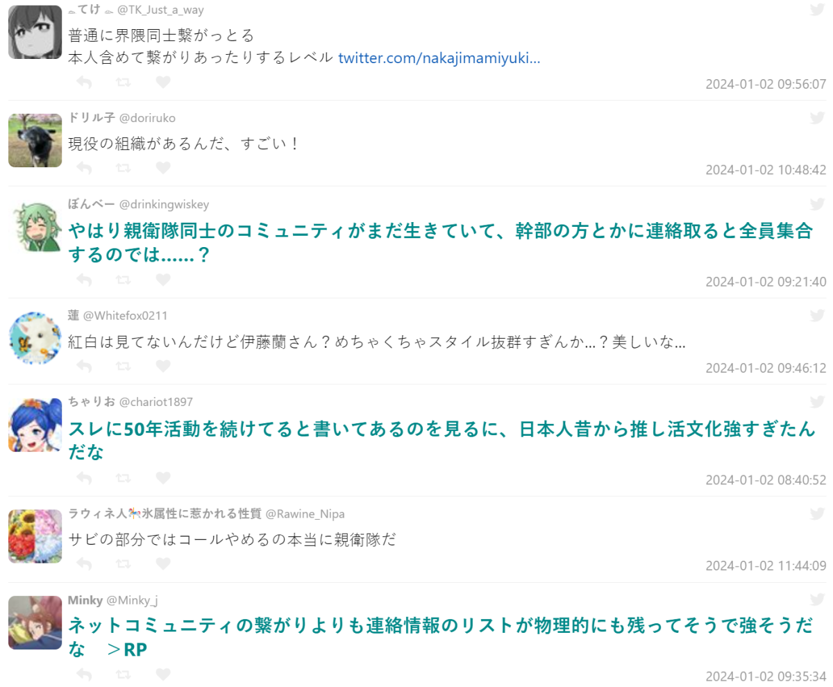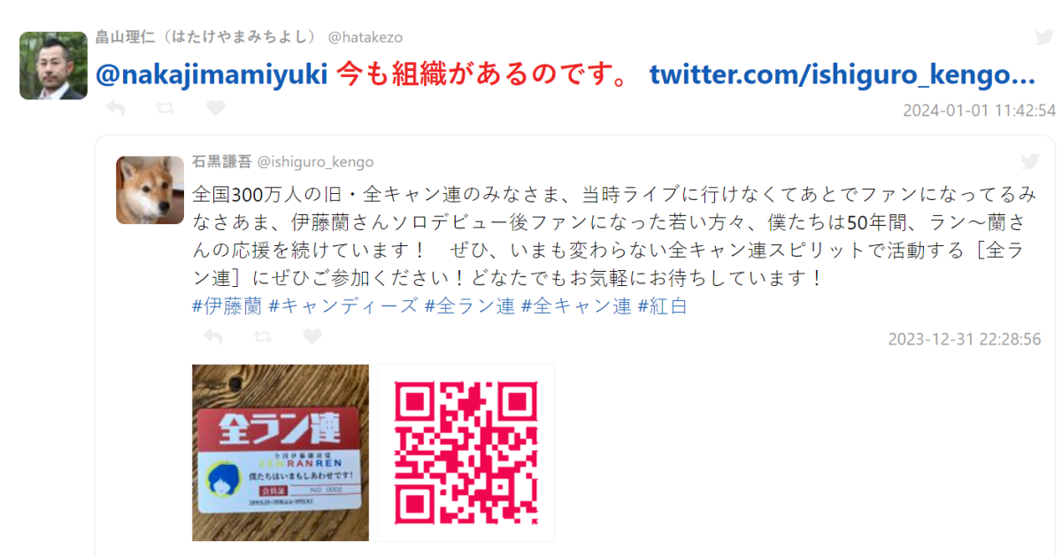 不過你或許會好奇,這樣的親衛隊偶像出道已經 50 年了,到底是否還有在運作呢?就有日本網友在 X 上詢問,沒想到居然得到親衛隊的親自回應,伊藤蘭的應援團「全ラン連」是還有在運作的,甚至還常有團聚,讓不少網友吃驚不已。