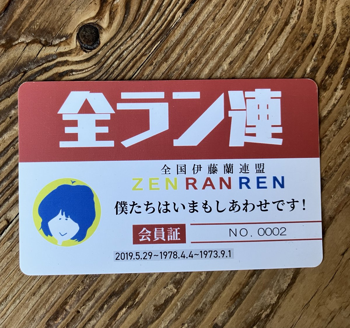 「全ラン連」全名為「全國伊藤蘭聯盟」,還有聯盟會員證,從上頭年代數字就知道已經超過 50 年的歷史。也表示這次紅白舞台下的應援就是聯盟召集的,還有許多夥伴無法前來,但會繼續支持下去。