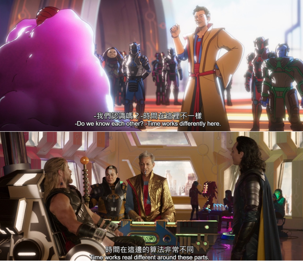 宗師遇到史塔克後非常興奮,說他是薩諾斯的終結者,但史塔克卻沒有印象,因為薩卡星上的時間運作方式和地球不一樣。而這點在《雷神索爾:諸神黃昏》就有提過。