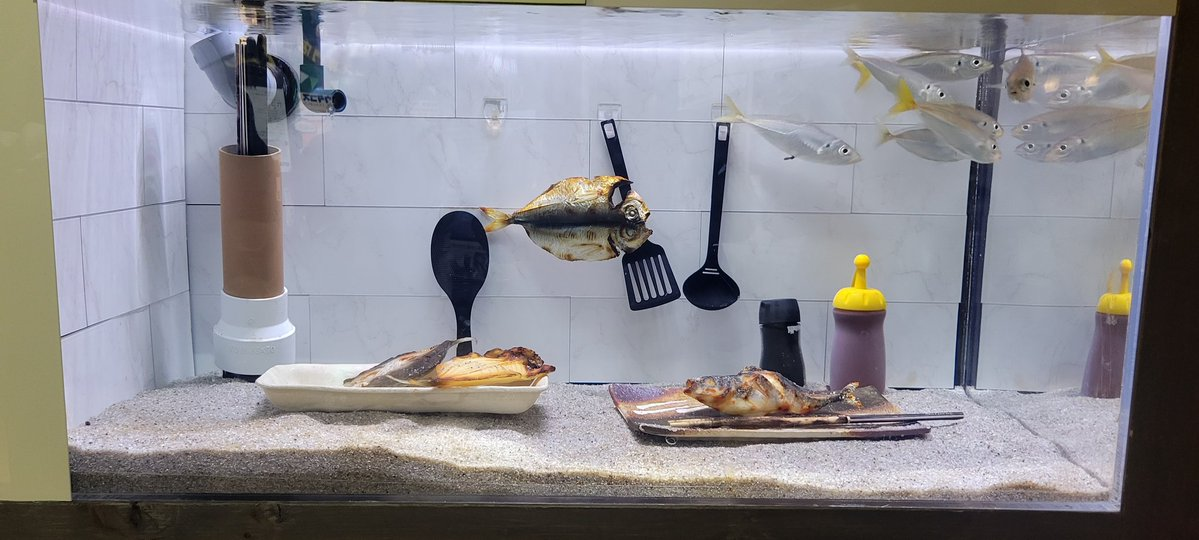 當然在不影響生物的情況下,這樣的場景陳設其實沒有問題的,不過的確會讓遊客感到驚喜甚至吸引更多遊客朝聖,水族館這類的設施現在也比較難以抓住觀光財,或許透過這樣的創意也不失一件好辦法。