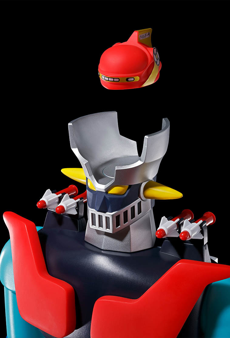 此外許多商品特徵都經過改良,像是頭部與指揮艇都新增內藏磁鐵,組合時能夠更加牢固不易脫落。雙手的「金剛飛拳」在當年版本僅能徒手拆下把玩,新版本則改良追加發射機構,只要按下手臂後方的按鈕就能將雙臂的「金剛飛拳」發射出去!同時配件還附上了祕密新兵器之一的「速射6連飛彈」,並且和當時設計一樣具備按下白色按鈕就能分別發射 6 枚飛彈的發射機構。