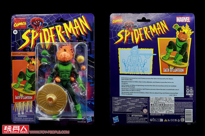 ▼「傑克南瓜燈」(Jack O'Lantern),最早現身於1980年的漫畫《機械人》(Machine Man)第19期,紐約惡名昭彰的超能罪犯,許多角色都曾使用過這個身份。本次的復古吊卡取材自其早期的經典造型,重現燃燒的南瓜頭盔和造形獨特的碟形飛行器。