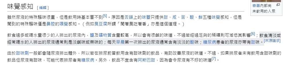 其實關於尿液的味道這件事,我們是可以從維基百科,或是相關學術的網頁上得到詳細解釋,例如維基百科中就明確提到:「飲食過多或喝水量很少的人排出的尿液內,鹽及礦物質含量較高,所以會有很鹹的味道。」