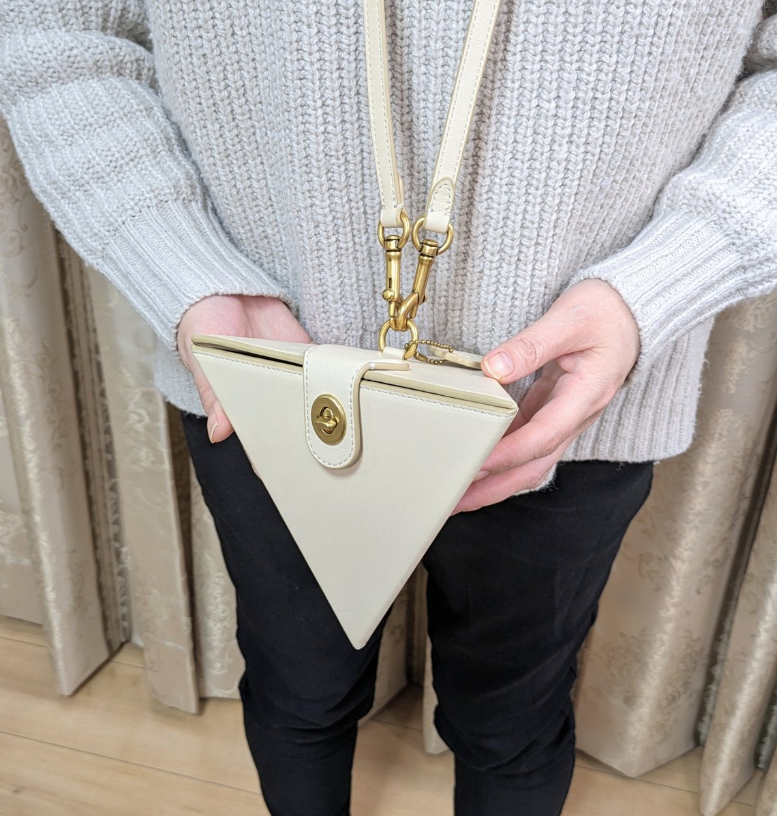 當然多數人是沒看過這款包包的,對於推主用千年積木比喻感到有趣,不過事實上千年積木是正四角錐,這款小包是三角錐,還是有差別的 www。
