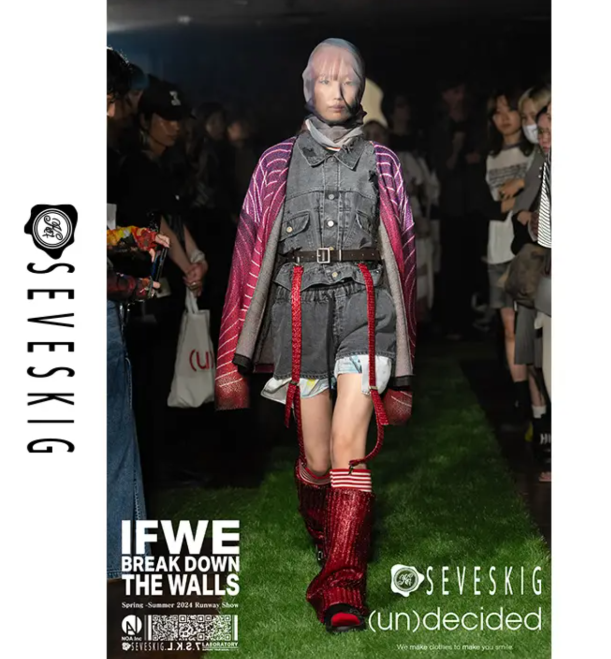 SEVESKIG 誕生於 2012 年,品牌設計師 Nori 喜歡在設計中使用異材質拼接製作,透過切割破壞與多重元素的相互衝擊,打造出一件件獨一無二的商品。近來也多與動漫 IP 合作,也曾與已故導演金敏的作品《藍色恐懼》合作推出服飾。
