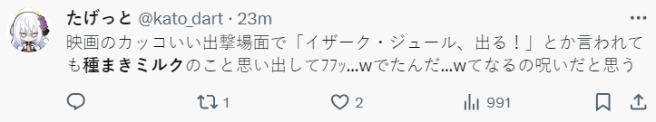 雖然已經在 X 上引發討論了,不過還是不清楚官方命名「伊薩克的播種牛奶」( イザーク隊⾧の種まきミルク ) 的用意為何,到底是劇場版的玄機,還是真的不小心搞錯了呢,只能看看到底這個名稱怎麼來的吧 XD。
