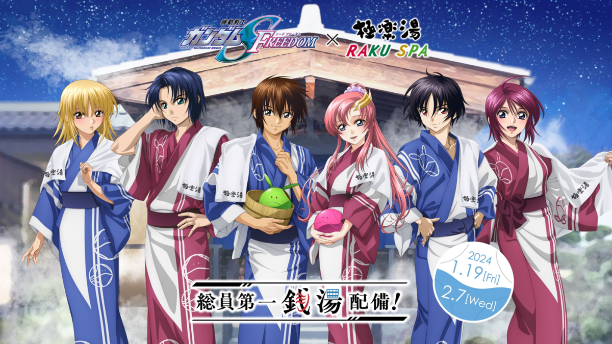 將在 1 月 26 日在日本上映的劇場版動畫《機動戰士鋼彈 SEED FREEDOM》,雖說還沒上映也啟動了許多合作項目,近日宣布了與日本連鎖泡湯店鋪「極樂湯」合作,邀請粉絲前來泡湯並享受在作品世界觀的風情。