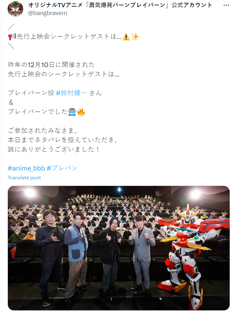 昨日 ( 1/11 ) 晚間開播首集的 Cygames 原創動畫《勇氣爆發Bang Bravern》(勇気爆発バーンブレイバーン),播出首集就以超級系勇者動畫風格引發話題,而バァドゥ也在 X 上分享,自己替官方製作的「Bravern」裝甲服,博得網友讚賞。