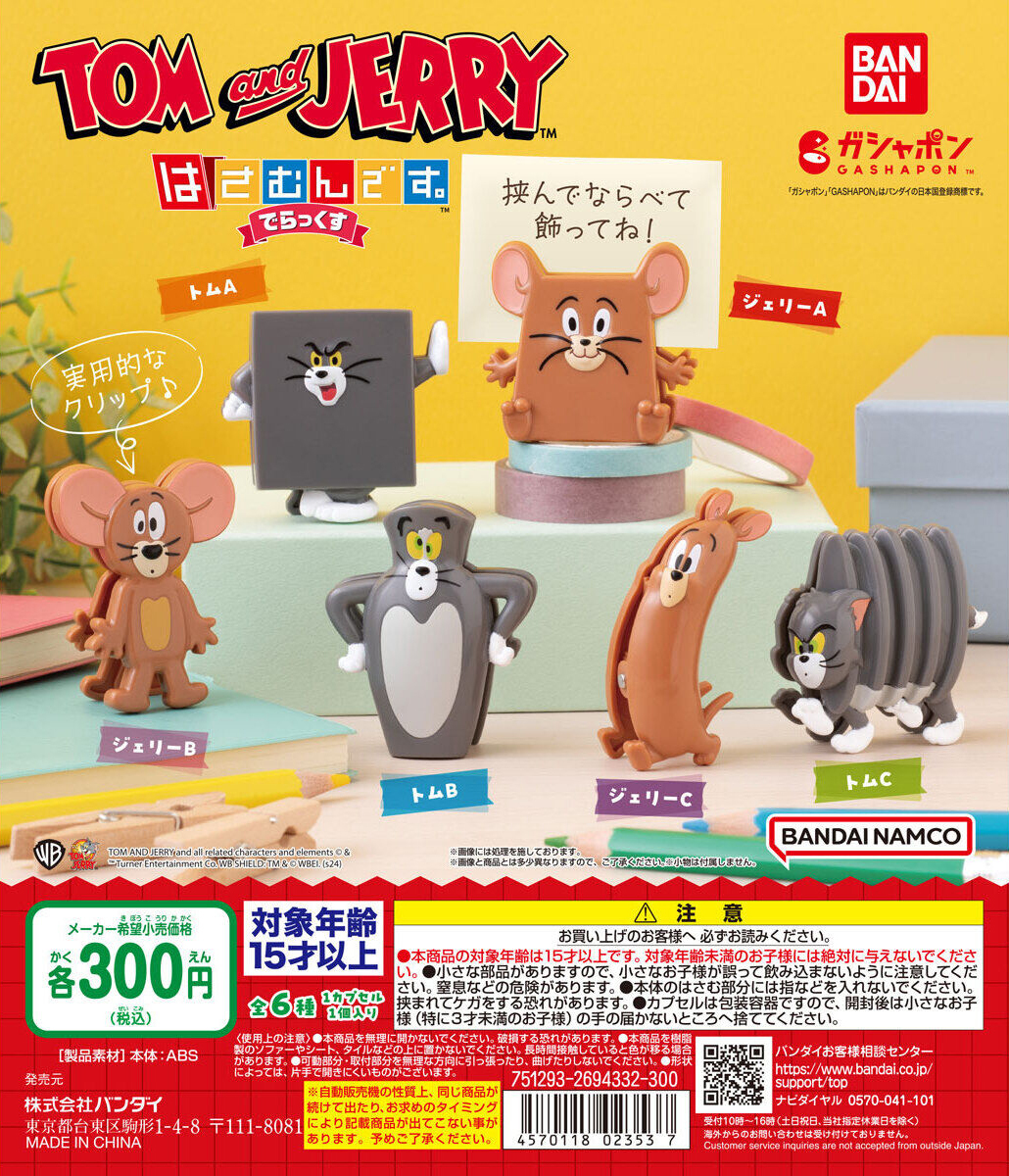 由日本萬代公司轉蛋玩具品牌 GASHAPON 發行的造型萬用夾商品系列「はさむんです。」將在本(1)月第三週發售一套出自經典喜劇動畫《湯姆貓與傑利鼠》的最新商品「TOM and JERRY 造型夾子豪華版」(暫譯,はさむんです。でらっくす)!