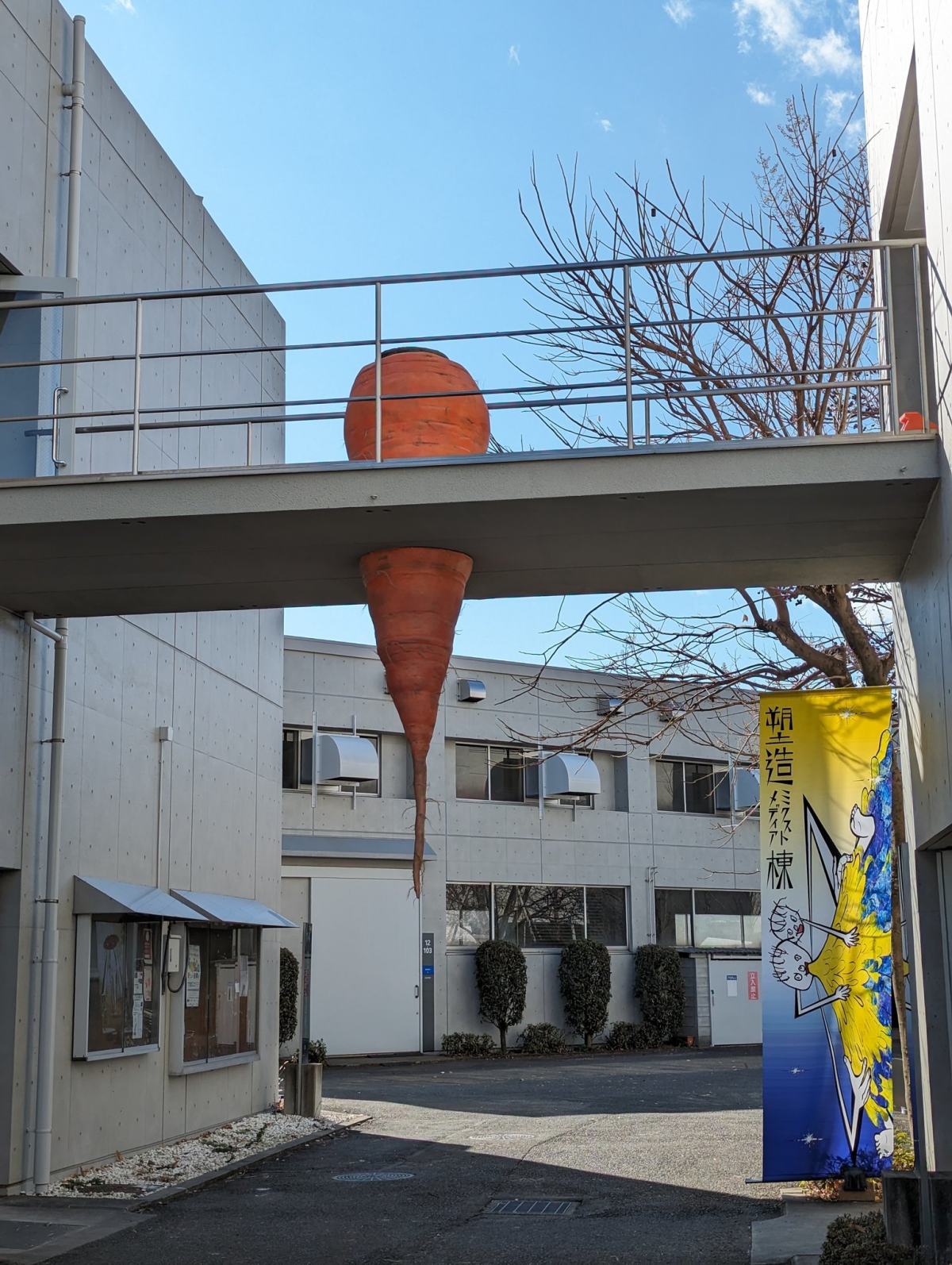日本的學制與我們台灣不同,大部分日本學校採三學期制,過了新年假期後接下來就是迎接該學年的最後一學期的時候,有些專科學校會準備畢業展覽,普通學校則會準備期末考或升學考。畢業展覽大概是許多專科學生最大的惡夢,準備展覽作品可比準備考試還累人多了,但至少展出的時候能有成就感與開心。最近有位學生的畢業作品在網上引起熱議,因為是根「超大胡蘿蔔」。