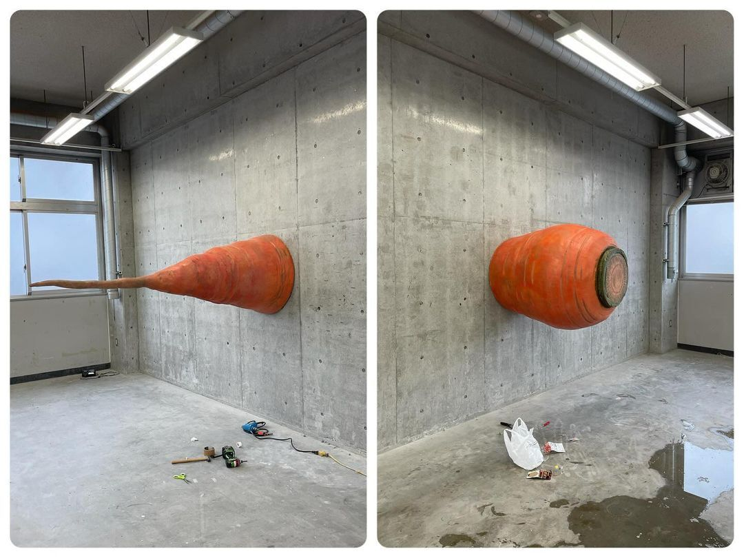 另外作者也在自己IG感慨大學這四年來的艱辛、悲傷與快樂,他起初以為美術這門科並不怎麼有趣,因為講究的東西很多又很深奧,但經過這四年洗禮後才理解做出自己想做的、有趣的東西才是最重要的。因此才有了這巨大胡蘿蔔。