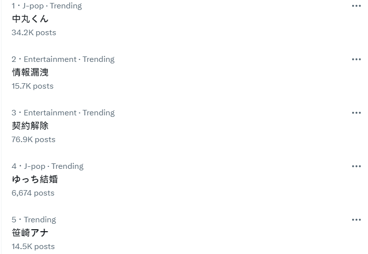 ▼ 中丸結婚也成為今日 X 趨勢關鍵字