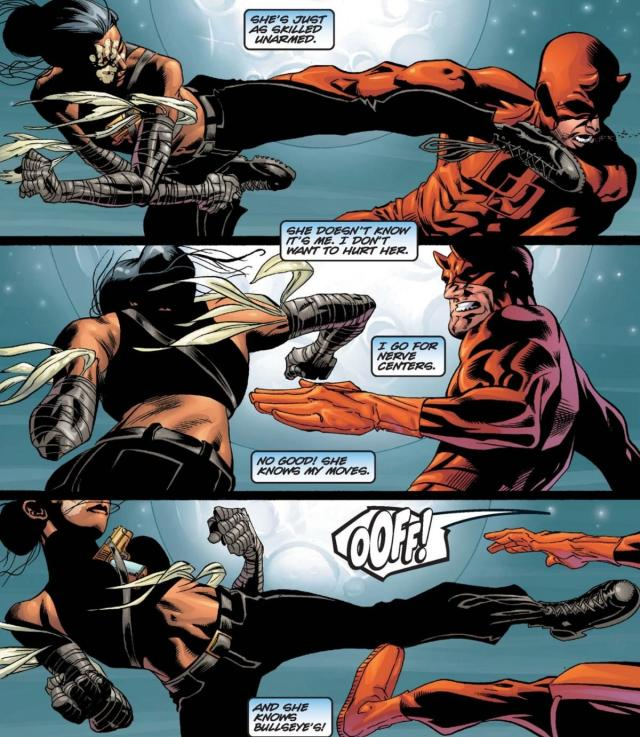 雖然「夜魔俠」在本劇出場的戲份沒有很多,但這段與瑪雅的混戰再一次讓人想起《夜魔俠》影集中暢快的長鏡頭對決,也透過這一段「實習」簡單交代了夜魔俠與金霸王之間的過節。