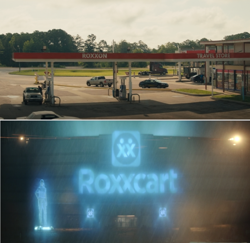 瑪雅騎車到一家 Roxxon 休息站,這是漫威宇宙經常出現的一家公司,連 Netflix 系列影集也曾出現過。上一次出現是在《洛基》第一季中洛基第一次與希薇相遇的宇宙。