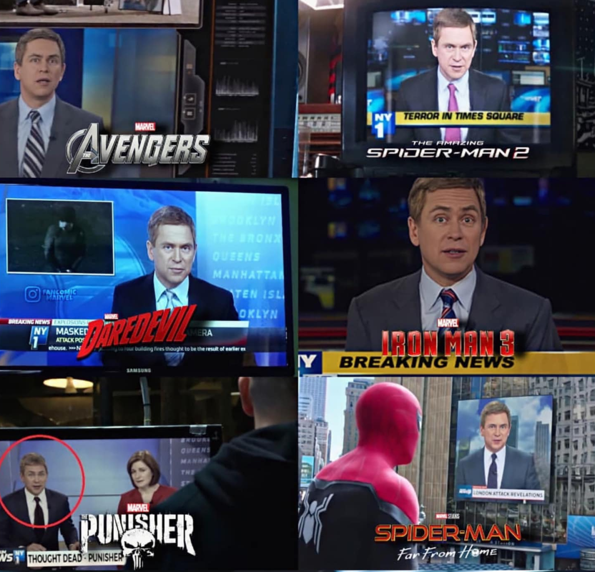 順道一提,這裡的新聞主播是 帕特·基爾南 (Pat Kiernan)他是現實中的新聞主播,但在不少漫威電影與電視中都有登場。