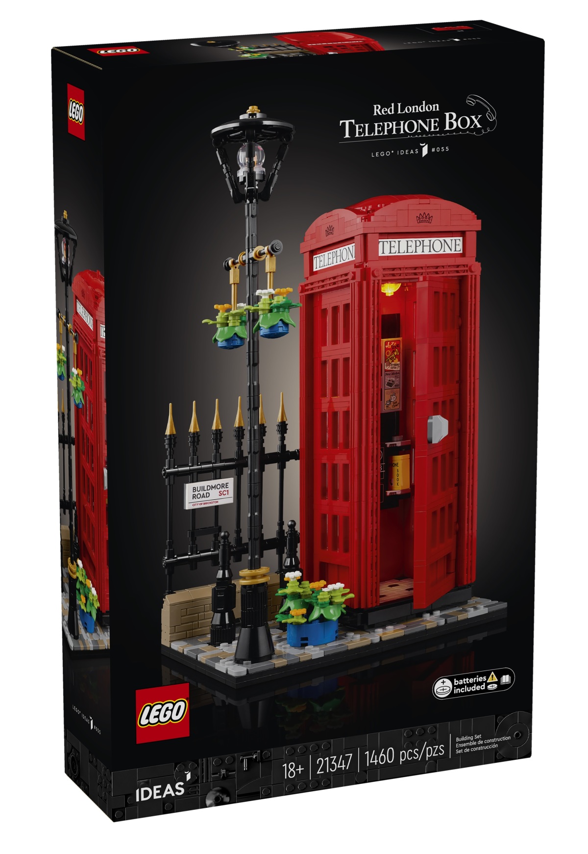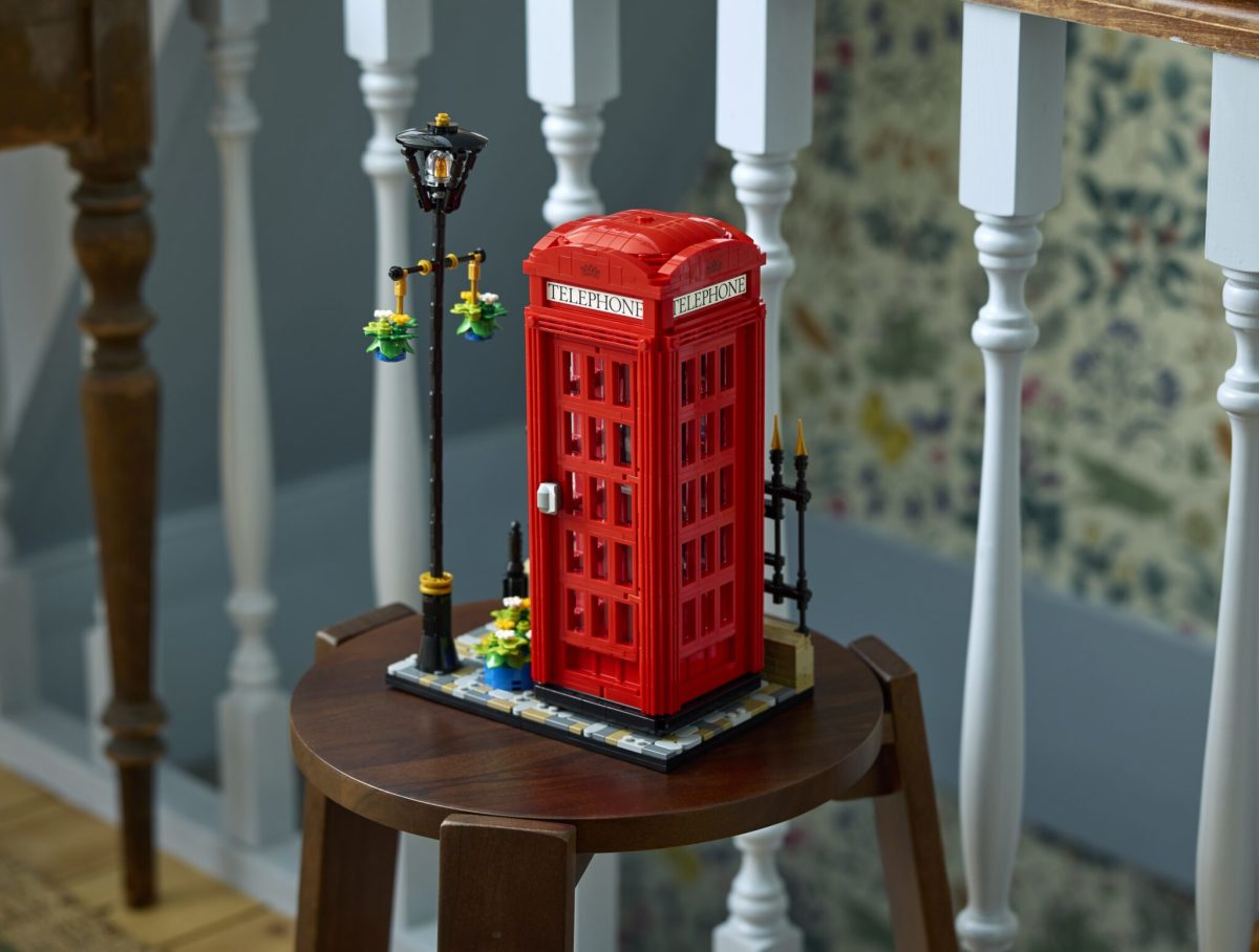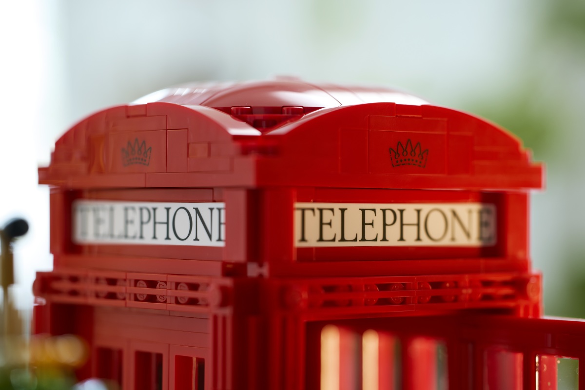 本作的原案設計是來自英國樂高迷 John Cramp,他以 Bricked1980 的身份於 LEGO IDEAS 投稿、在獲得一萬票支持之後順利通過官方審核並正式商品化;這款「倫敦紅色電話亭」是擁有 1460 片零件的場景組,組完長約 19.5 公分,高度則來到 31 公分,除了 K2紅色電話亭的外觀、TELEPHONE 字樣與皇冠標誌的印刷相當還原之外,內裝細節更是不容小覷!包含復古撥盤式電話、1980 年代風格電話兩種樣式,頂部還設有發光磚塊。