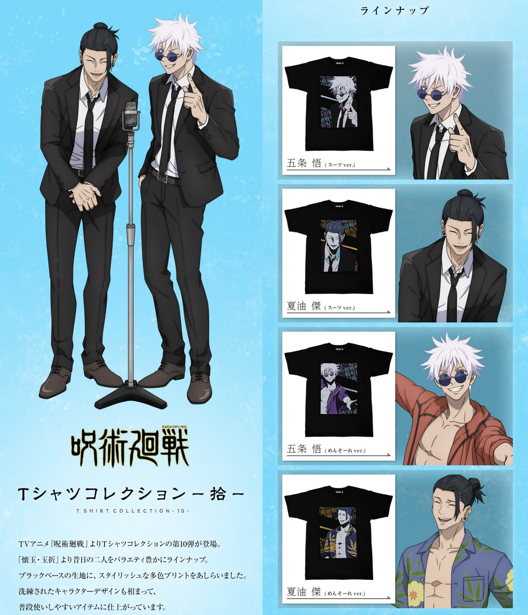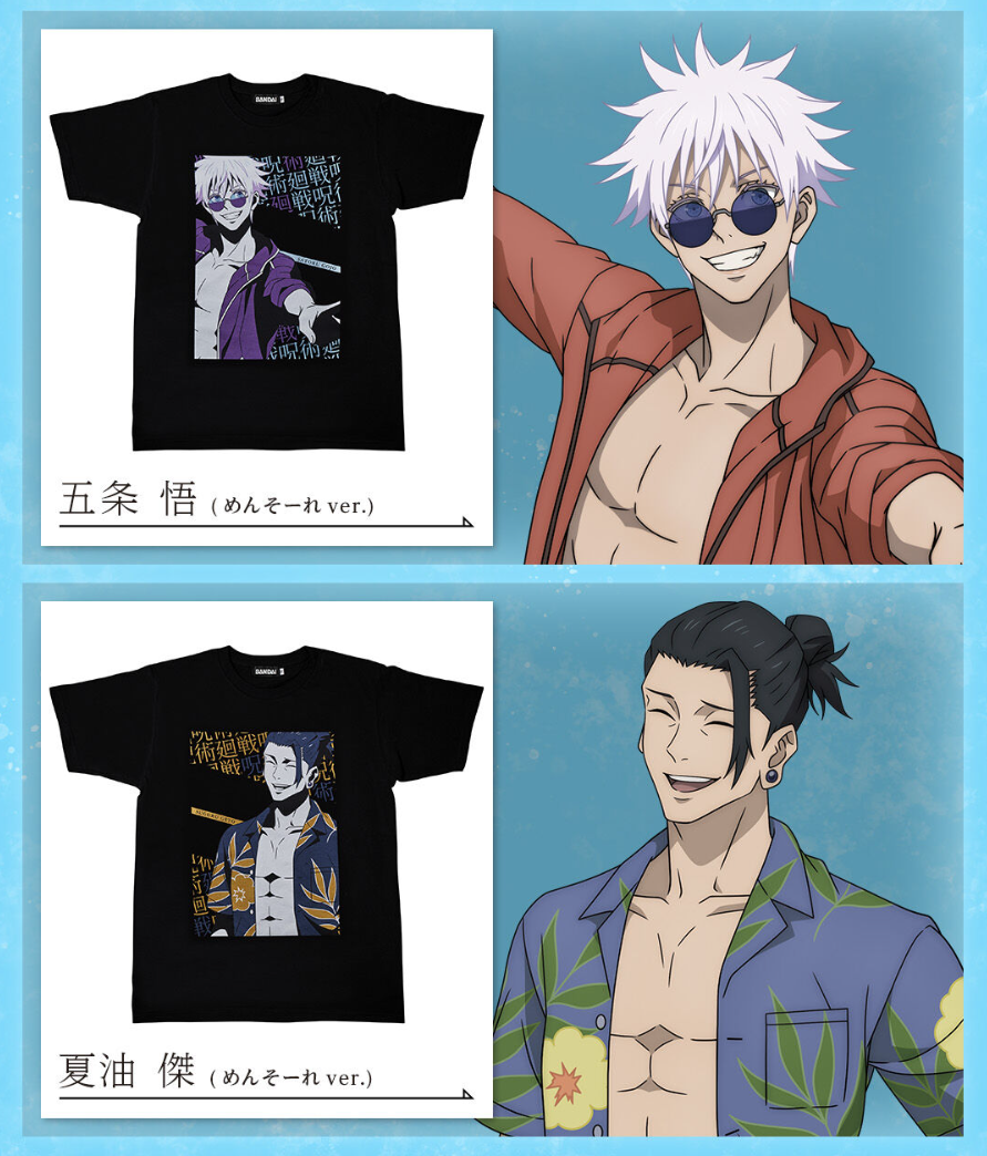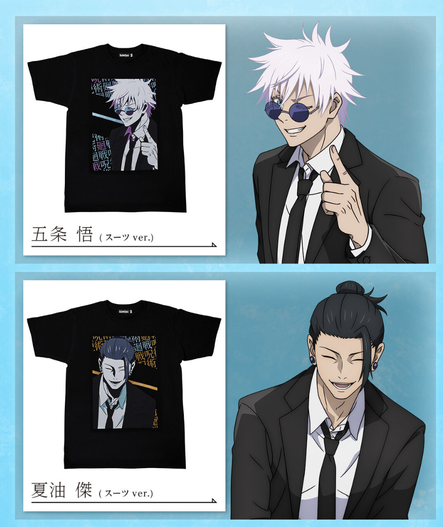 日本萬代旗下專門推出角色主題服飾、生活週邊的「BANDAI FASHION COLLECTION(バンコレ!)」, 近日宣布以人氣動漫作品《咒術迴戰》推出兩位人氣角色 - 五條悟 & 夏油傑兩人的短 T 系列商品,以兩種造型為主題。售價為 3,850 日圓,已可於日本萬代 PB 網站預購。