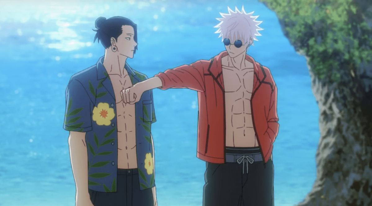 分別選用漫畫 77 話扉頁的「漫才師 」造型以及懷玉·玉折篇劇中兩人為了保護星漿體天內理子而來到沖繩的「海灘服裝」為插圖設計,給予各位不同與一般穿著高專制服的高中版本五條悟 & 夏油傑。