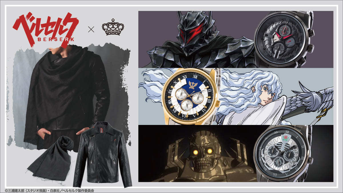 近日宣布與已故漫畫家三浦建太郎創作的《烙印勇士》合作,推出以人物為主題的商品,共有手錶與騎士皮衣以及披肩,目前已開放預購。